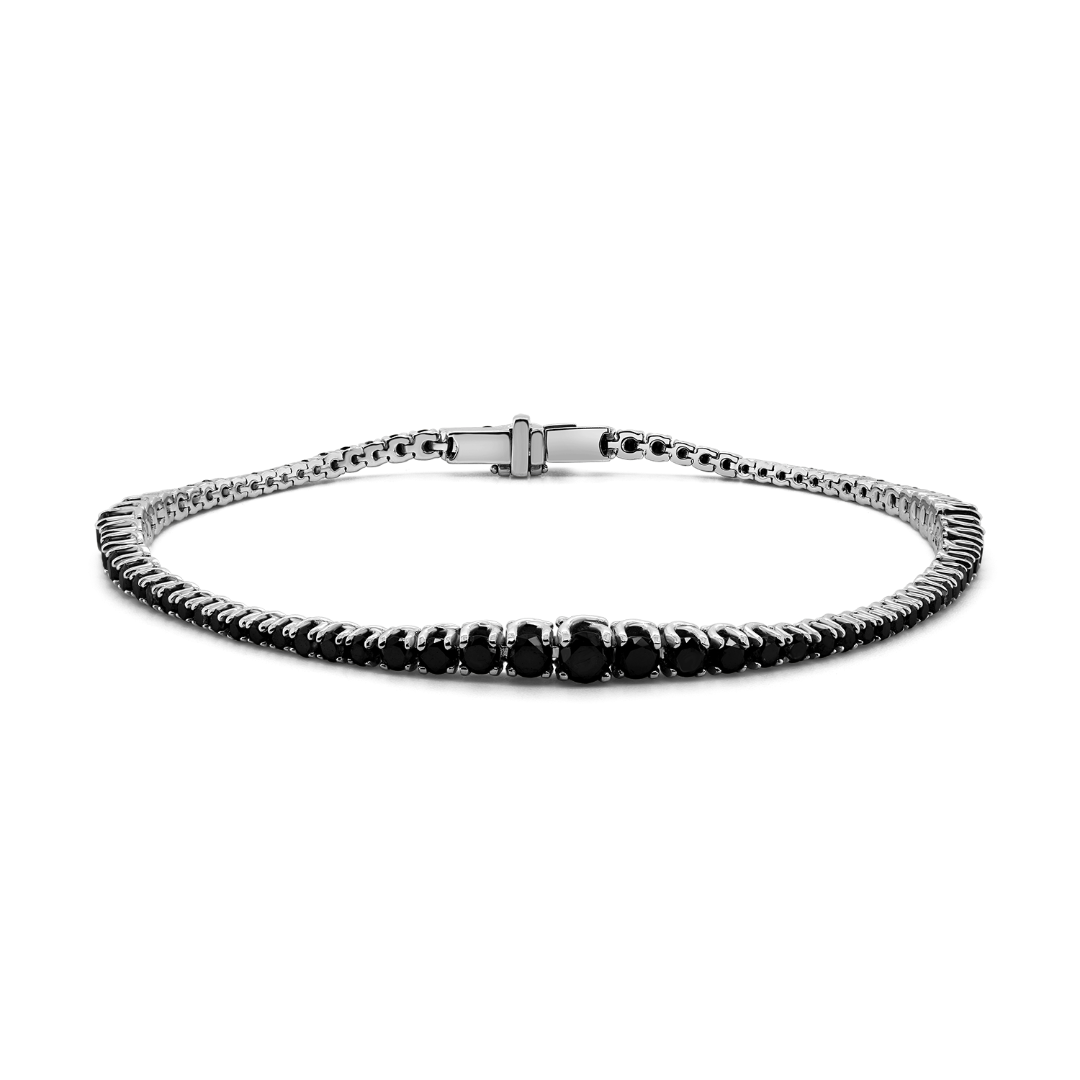 >Brățară Tennis din >aur alb de 18K încrustată cu Diamante negre naturale de 3.20ct.