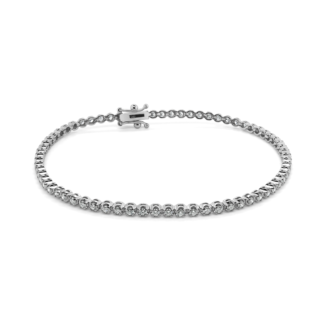 Brățară Tennis din aur alb de 18K încrustată cu 70 de Diamante de 1.18ct.