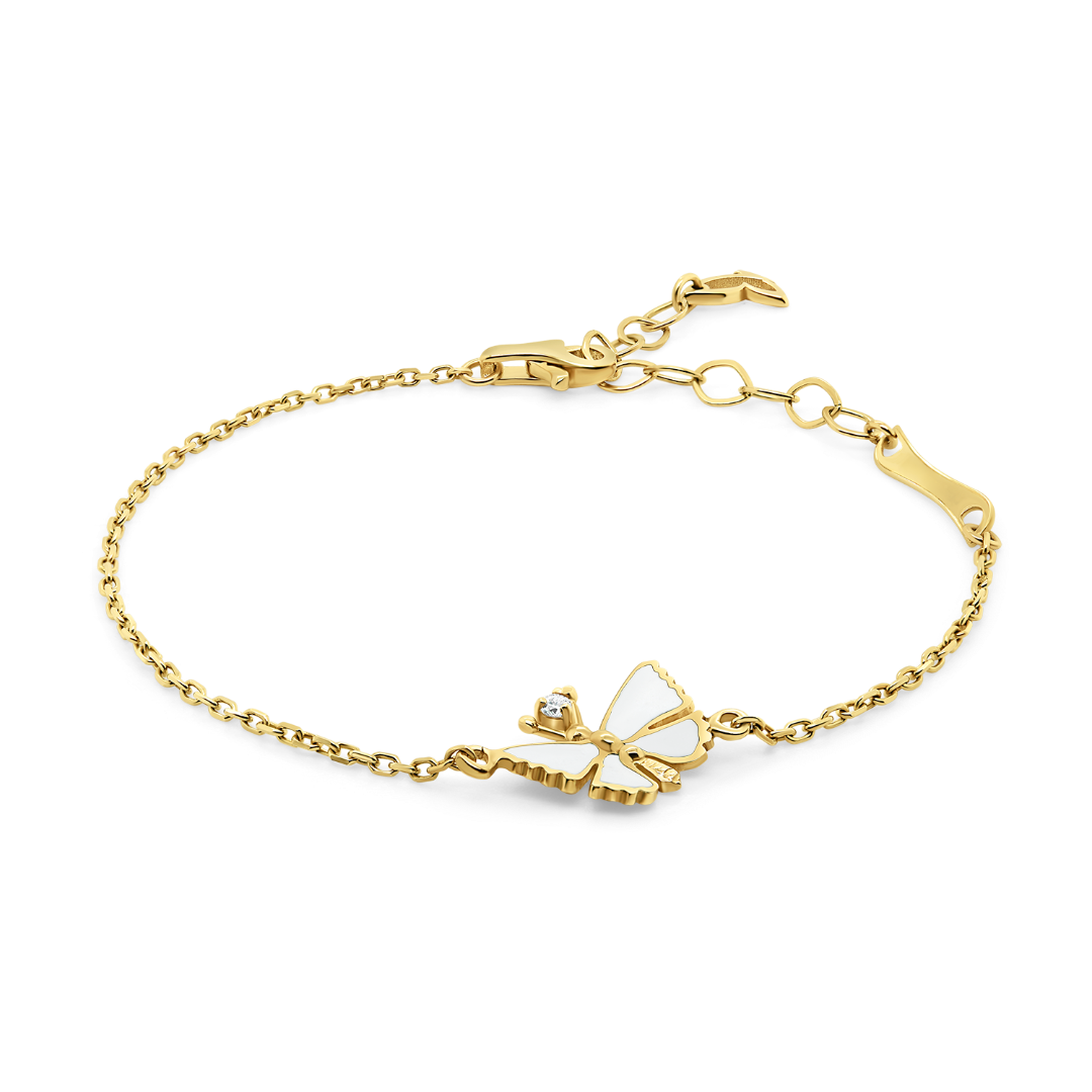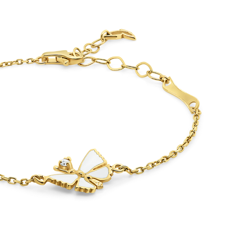 Brățară din aur galben de 14K cu un Diamant natural de 0.03ct și Email alb.