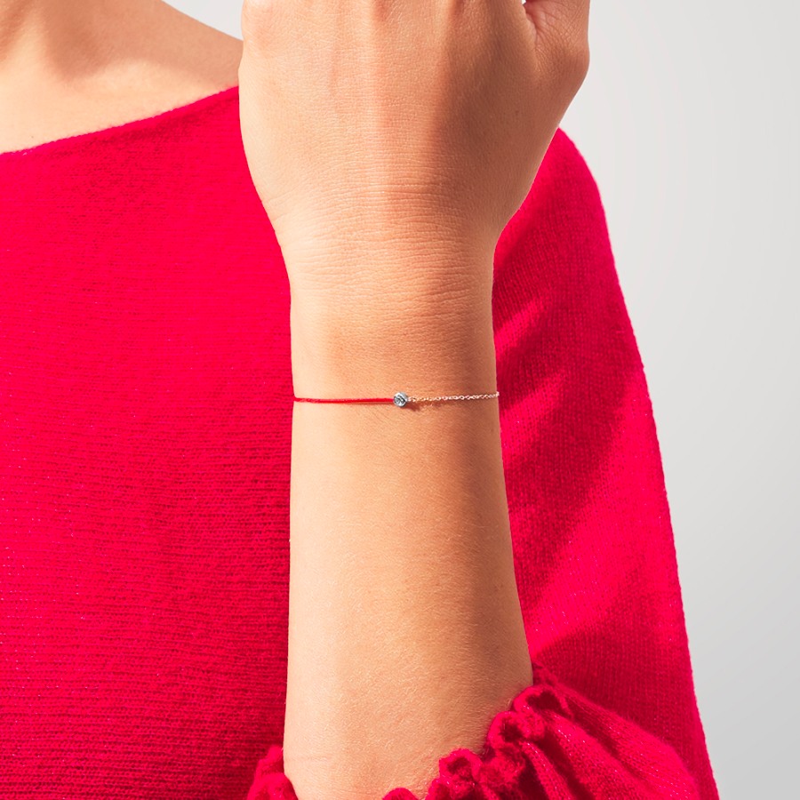 Brățară din aur galben de 18K, cu Diamant și șnur roșu