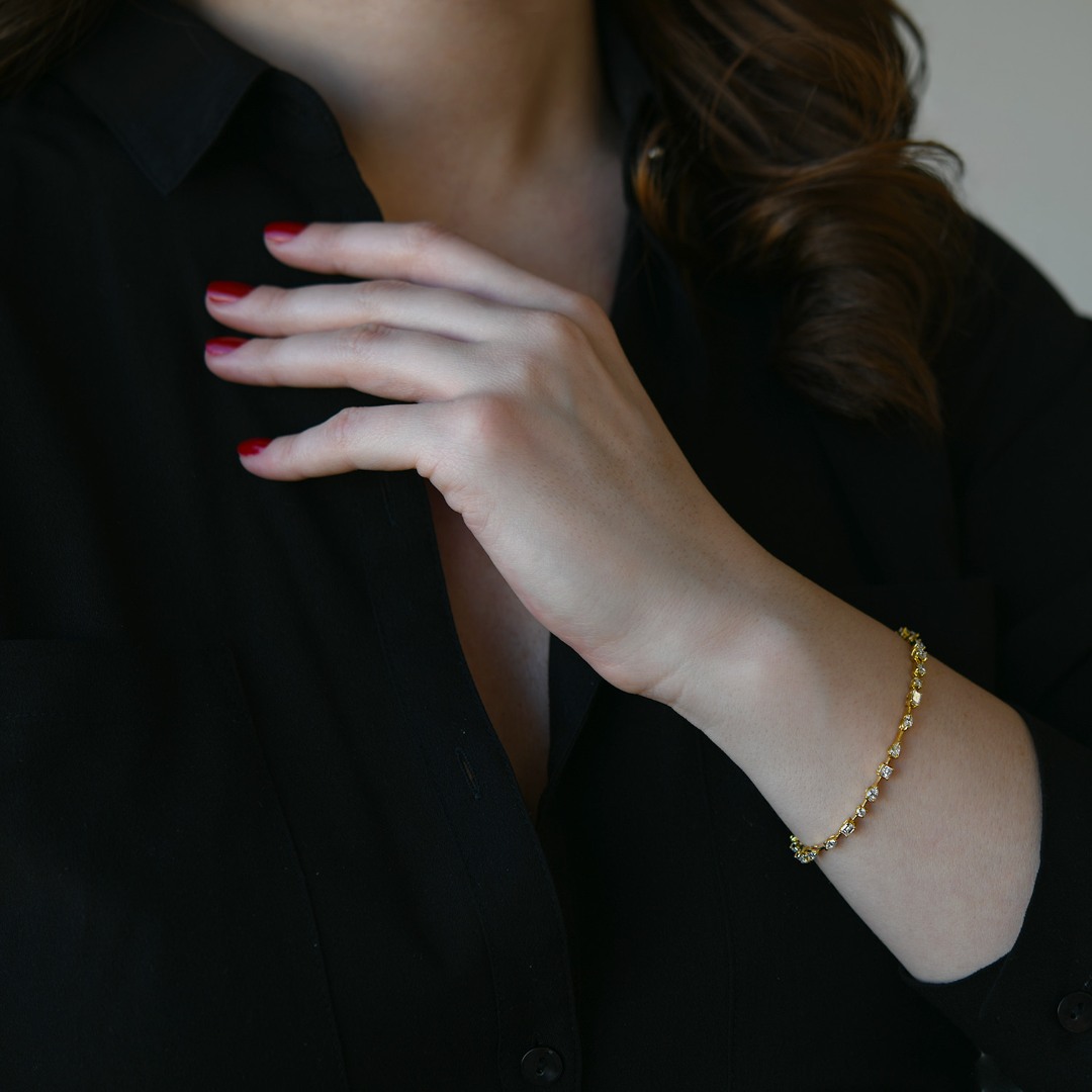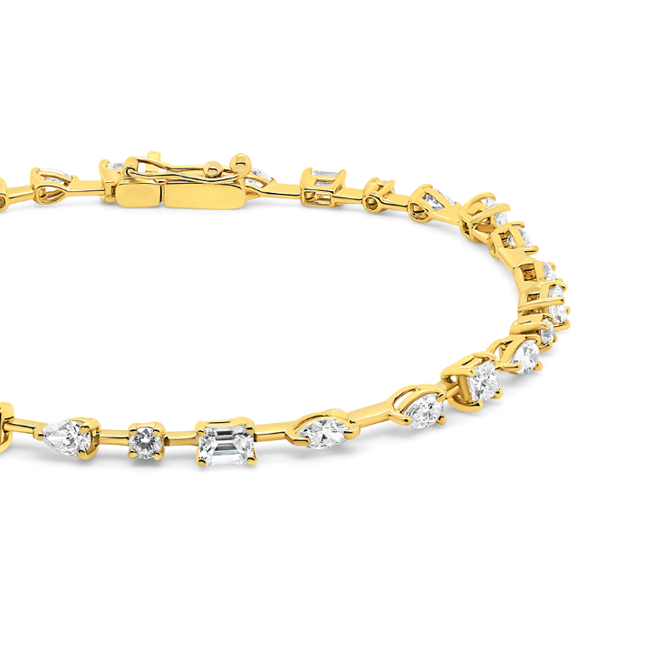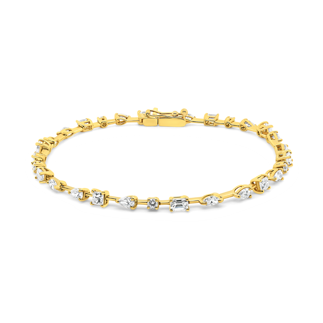 Brățară din aur galben de 18K încrustată cu Diamante naturale Pear, Round Brilliant, Emerald și Princess Cut cu o greutate totală de 2.67ct.