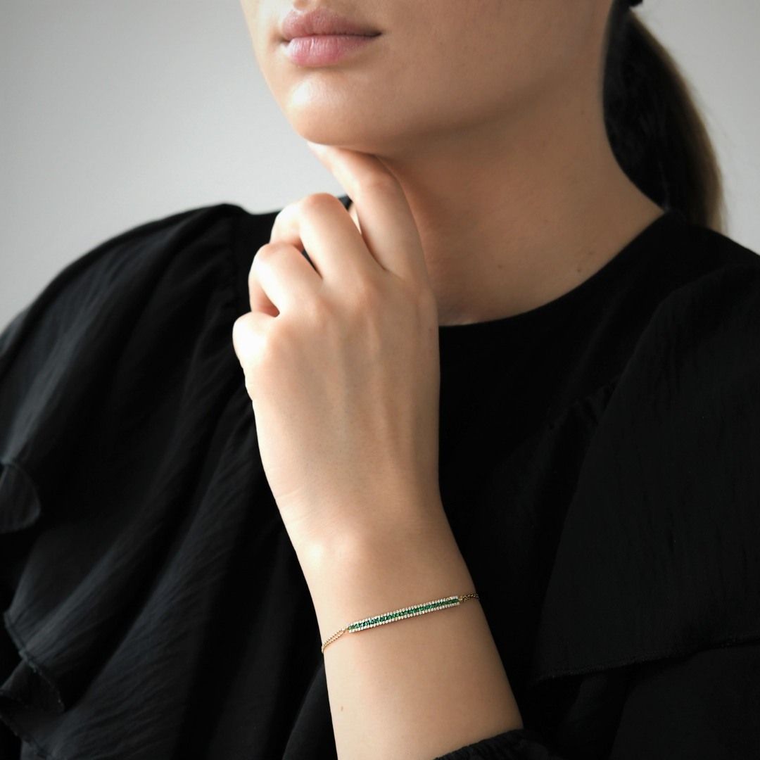 Brățară din aur galben de 18K cu Smaralde și Diamante naturale