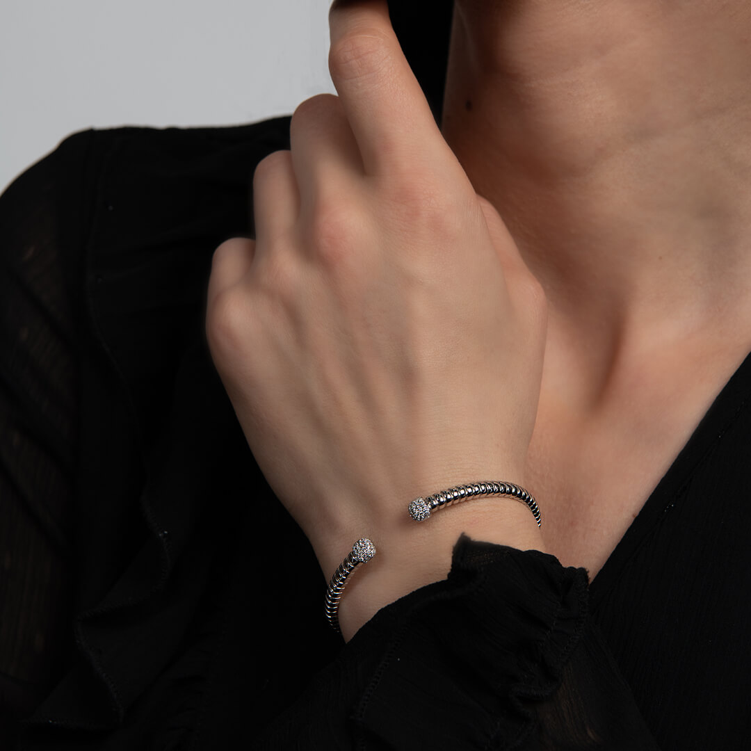 Brățară fixă din aur alb de 18K cu Diamante naturale