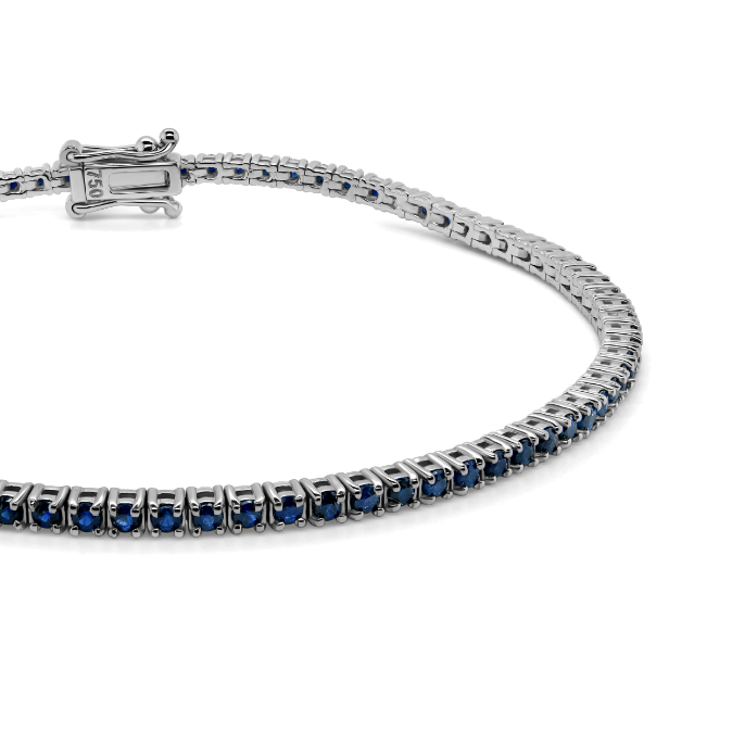 Brățară Tennis din aur alb de 18K cu Safire albastre naturale