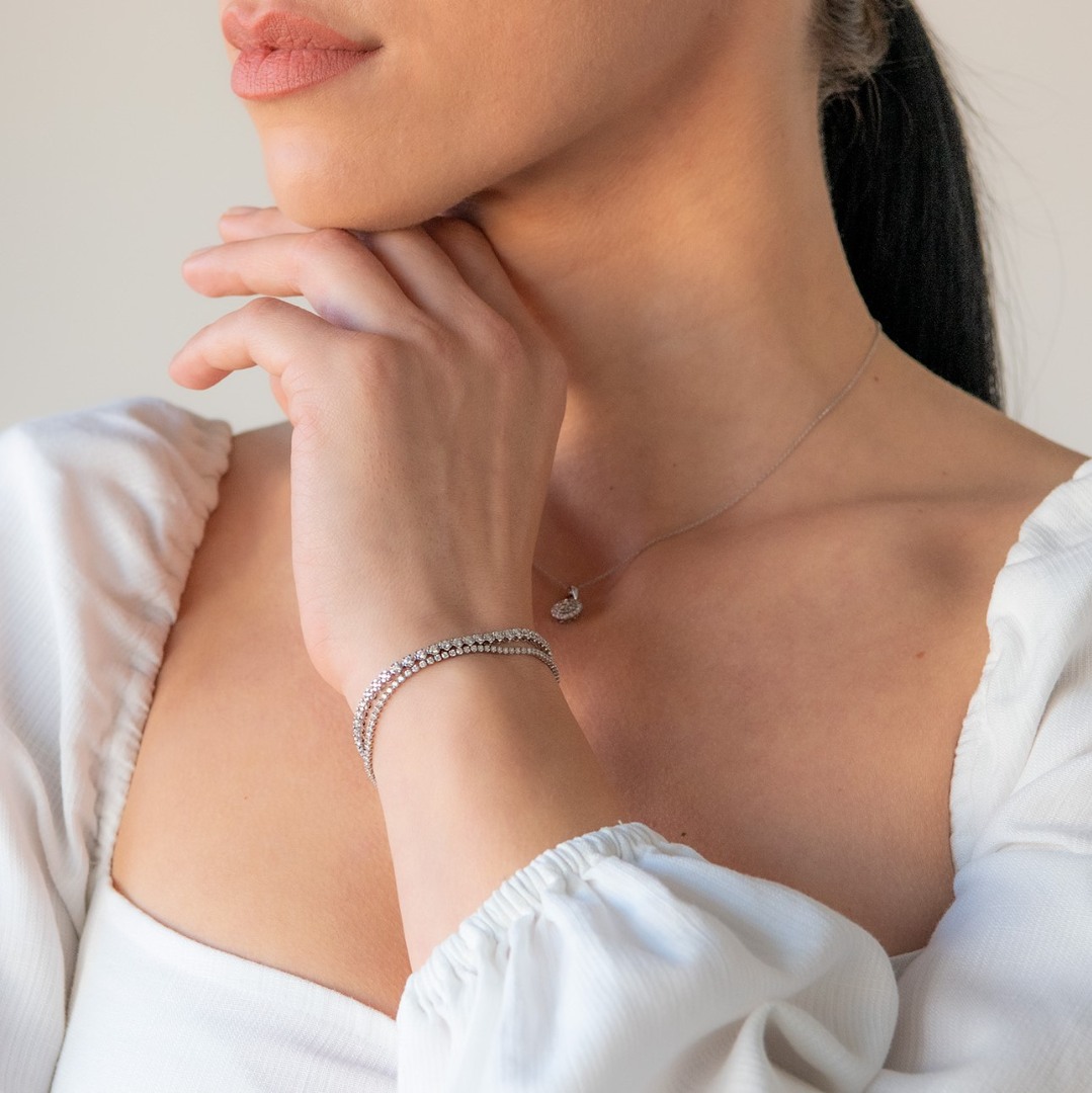 Brățară Tennis din aur alb de 18K cu Diamante naturale