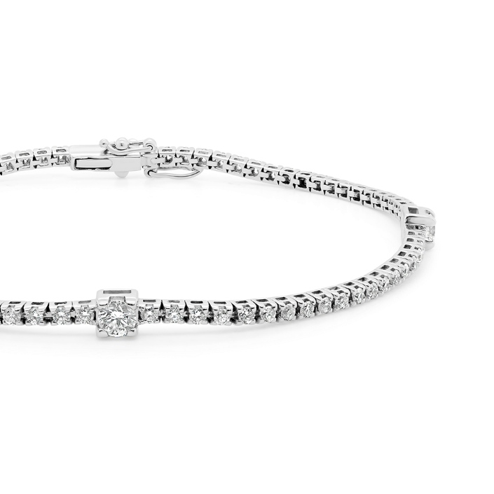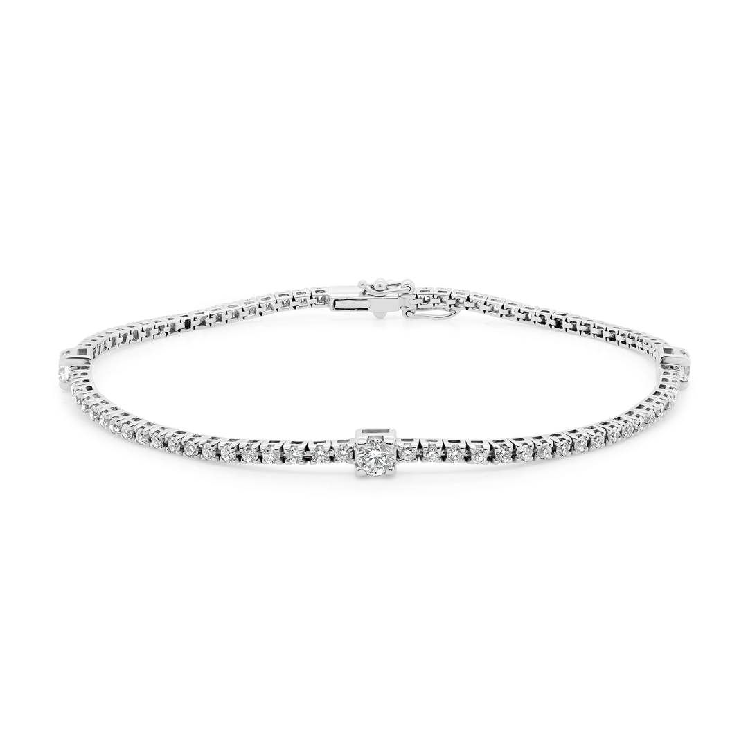 Brătară Tennis din aur alb de 18K, încrustată cu Diamante naturale Round Brilliant cu o greutate totală de 1.51ct.
