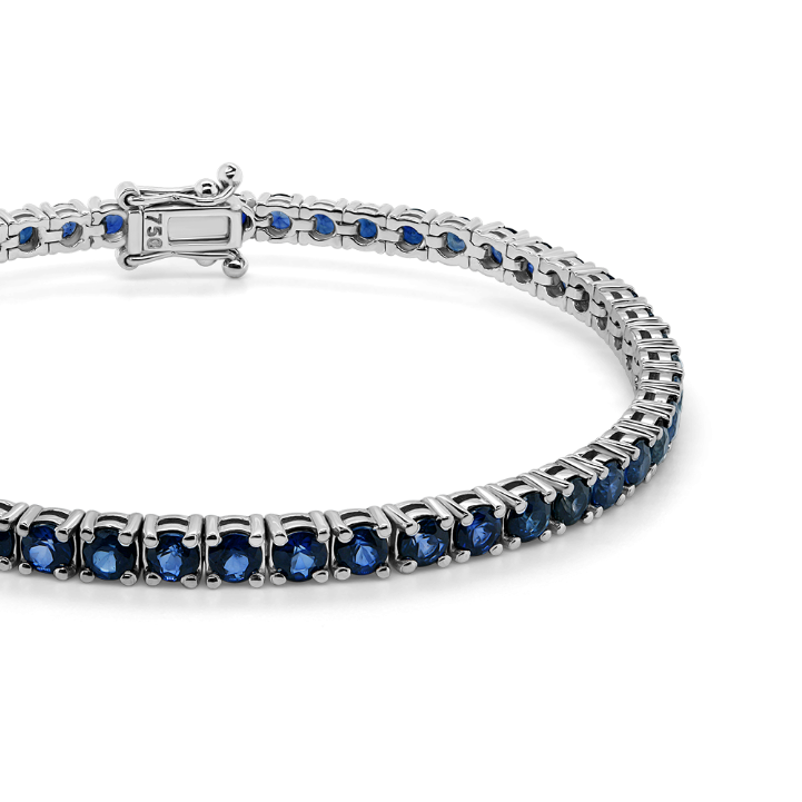 Brățară Tennis din aur alb de 18K cu Safire albastre naturale