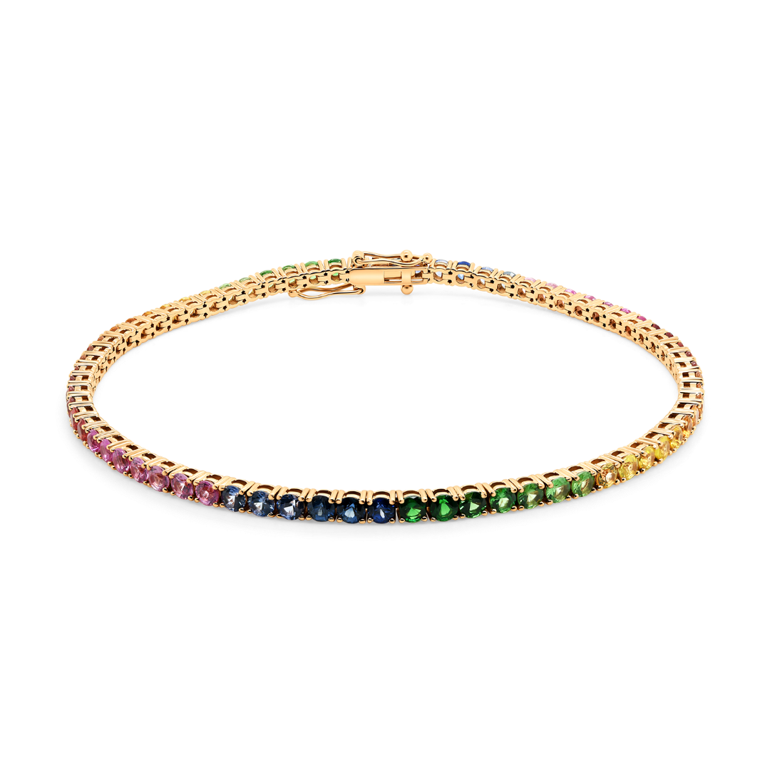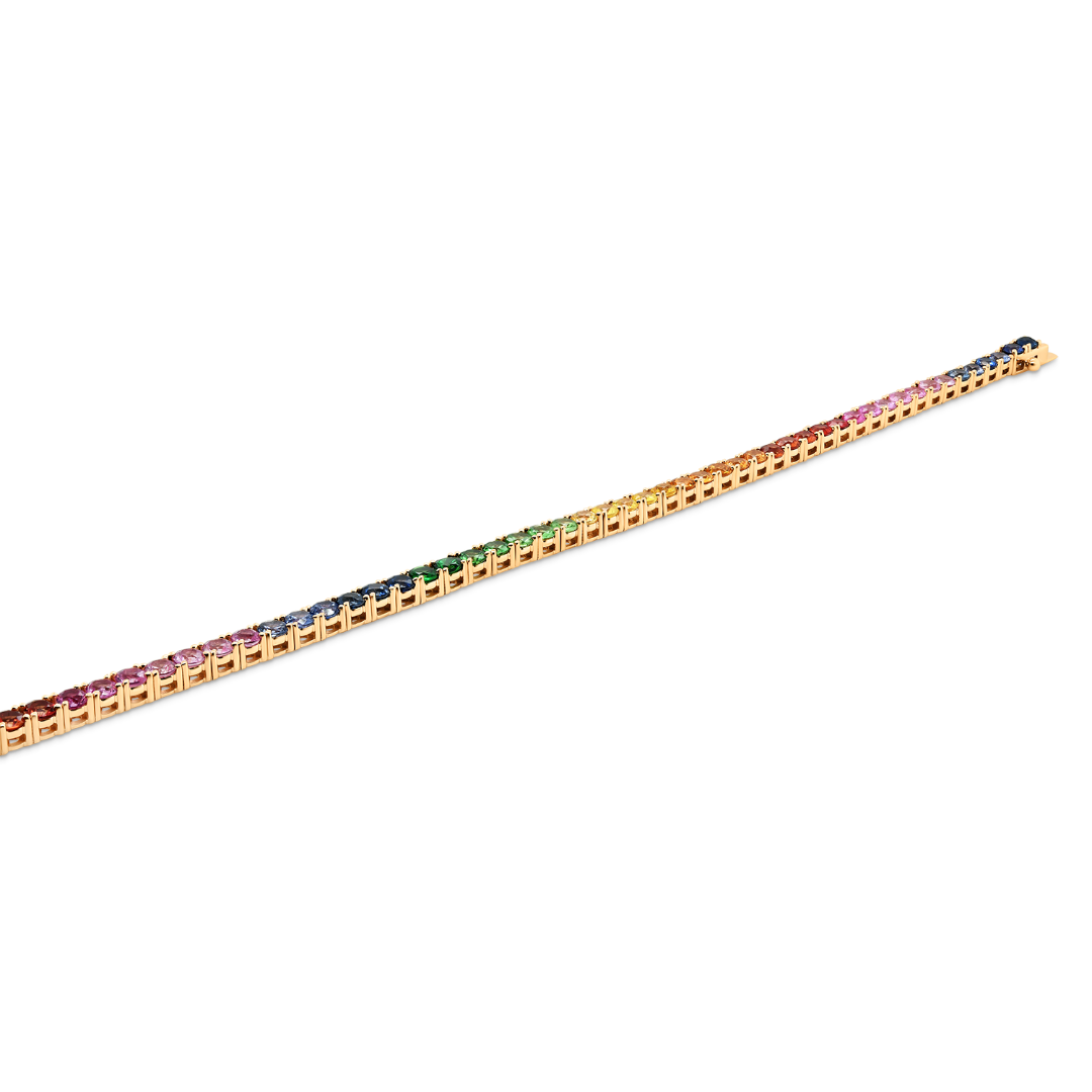 Brățară Tennis din aur roz de 18K încrustată cu Safire Fancy naturale.