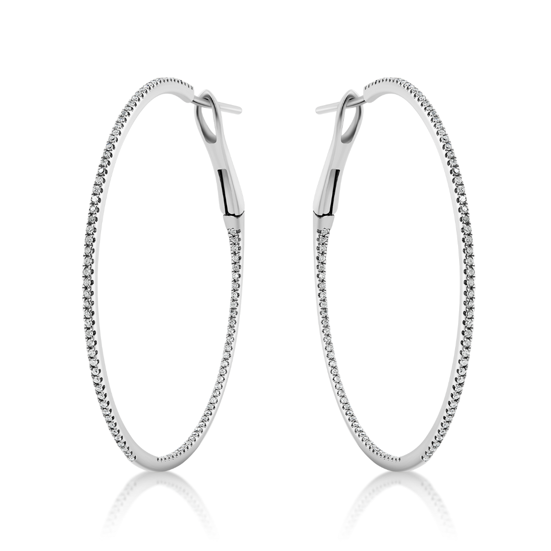 Cercei creole din aur alb de 18K, cu Diamante de 0.32ct.