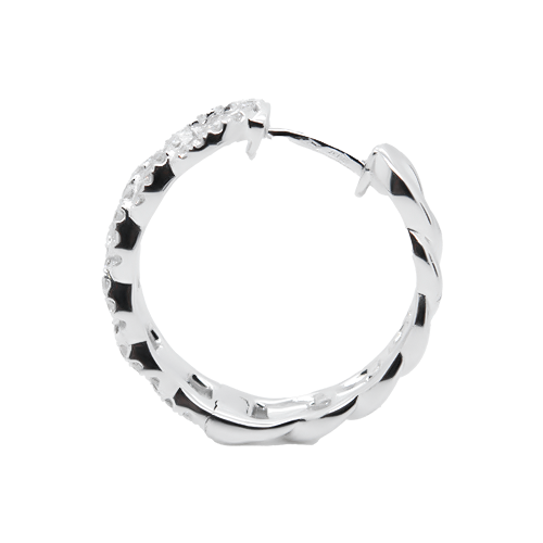 Cercei cu model împletit din aur alb de 14K, cu 116 Diamante de 0.72ct.