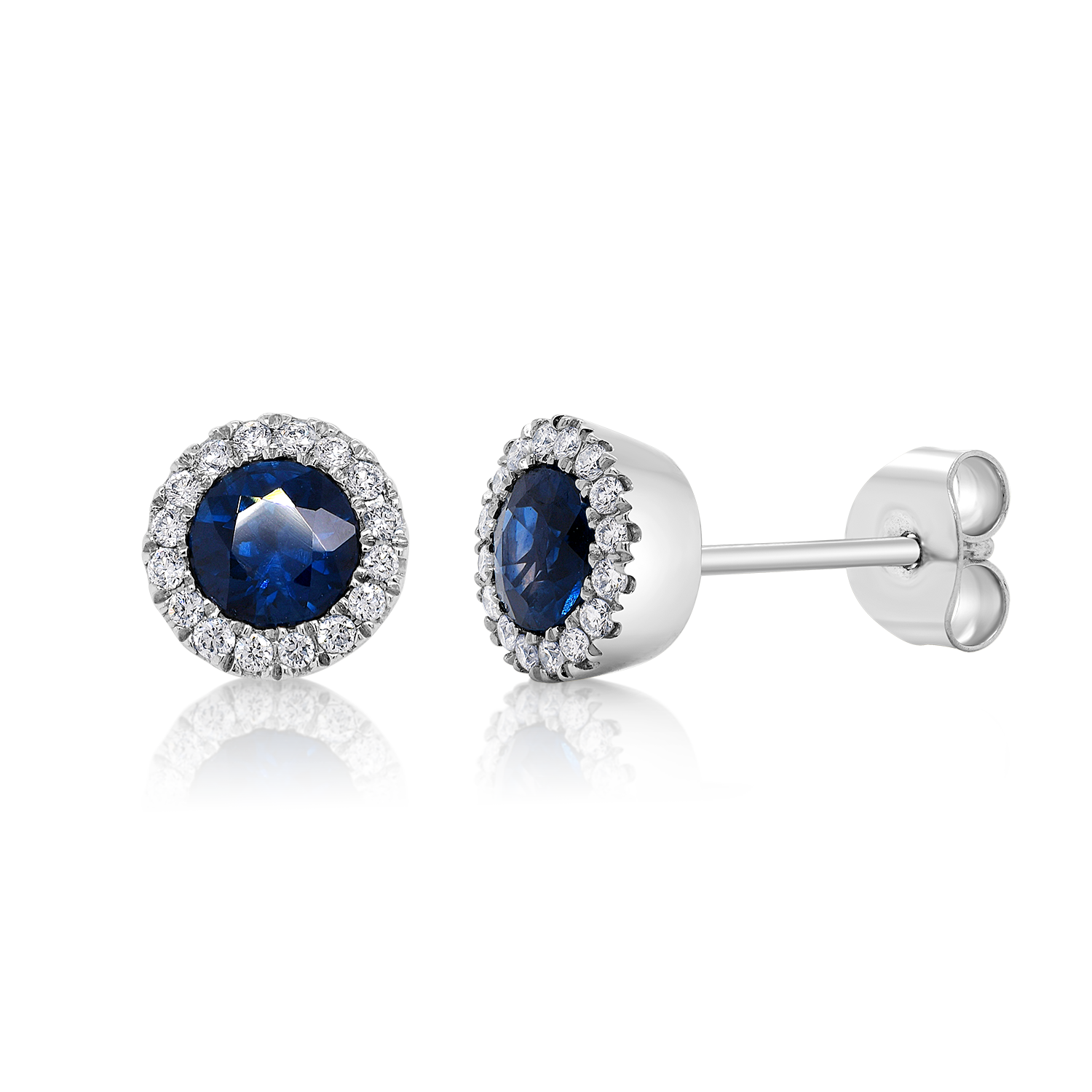 Cercei din aur alb de 18K, cu Diamante Brilliant cut de 0.13ct și Safire albastre.