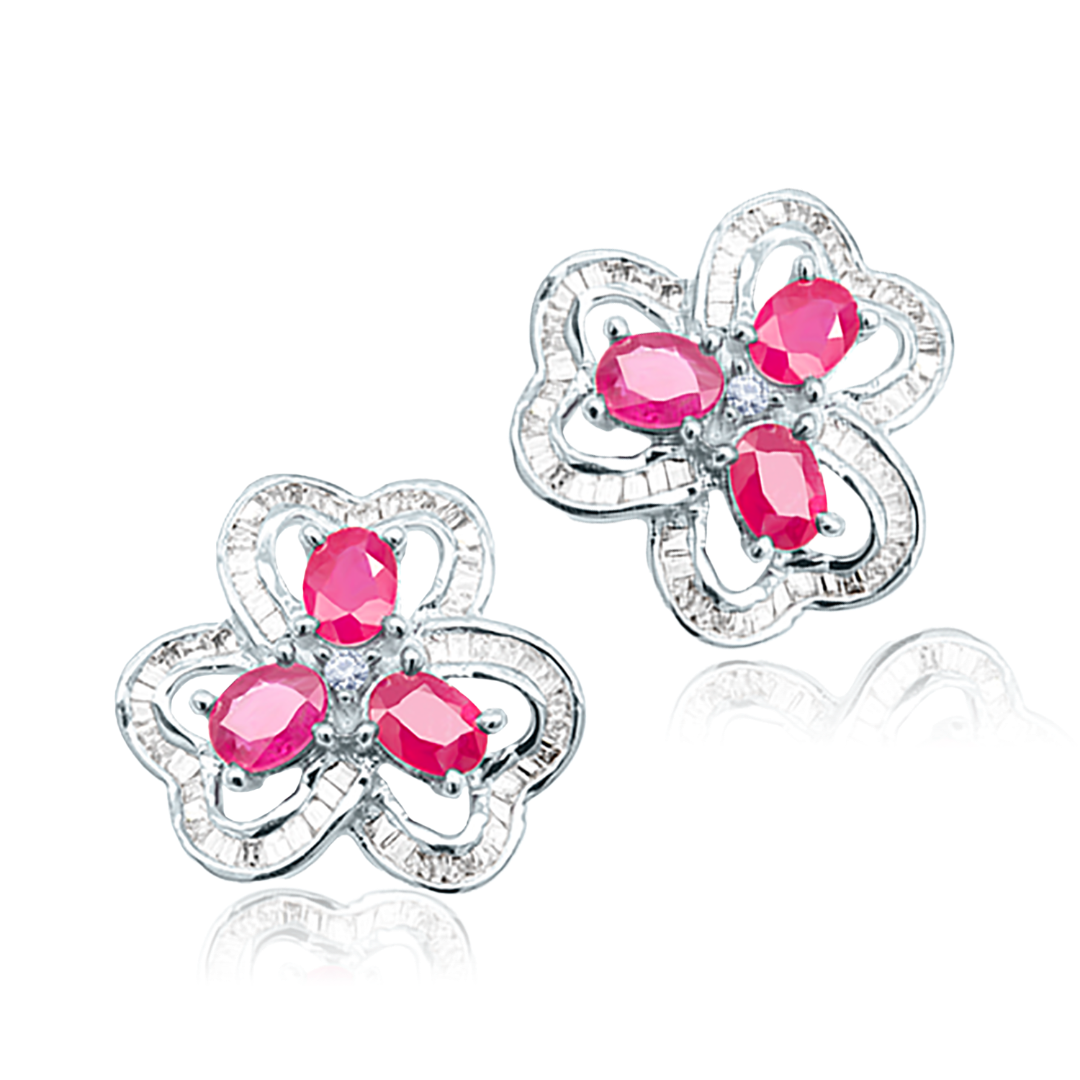 Cercei din aur alb de 18K, încrustați cu Diamante de 0.40ct. și Rubine de 1.52ct.