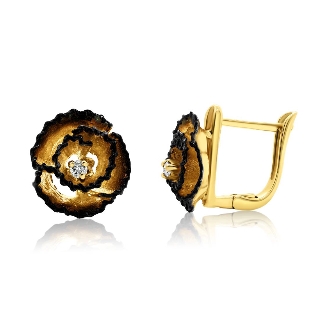 Cercei din aur galben de 14K, cu Diamante 0.06ct și rodiu negru.
