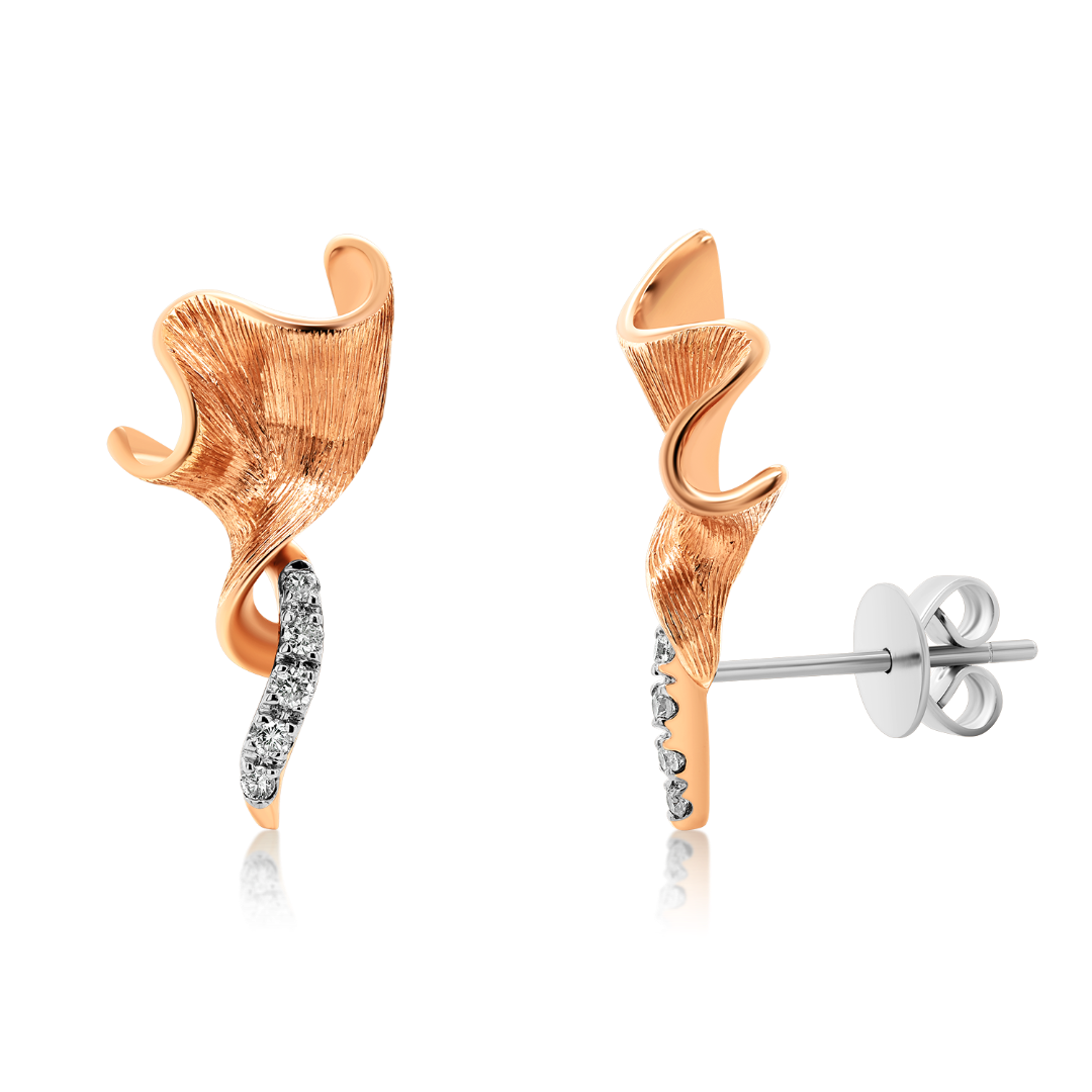 Cercei din aur roz de 18K, cu Diamante 0.06ct.