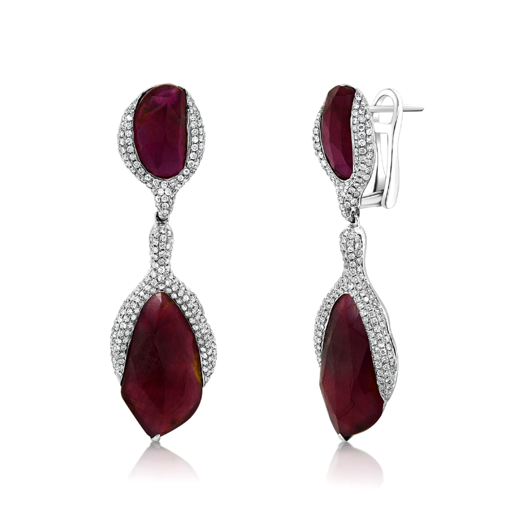 Cercei din aur alb de 18K încrustați cu 452 de Diamante incolore de 1.50ct și 4 Rubine de 20.91ct.