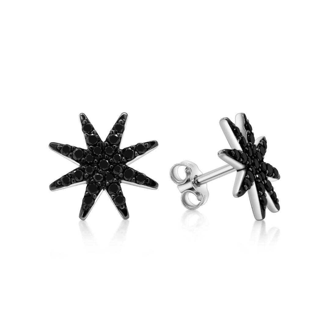Cercei din aur alb de 18K cu Diamante negre naturale.