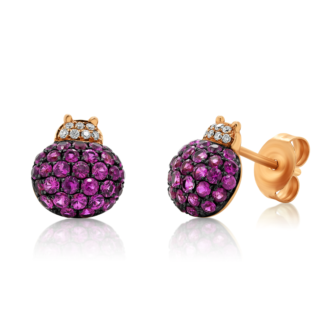 Cercei din aur roz de 18K, încrustați cu Diamante naturale si Rubine