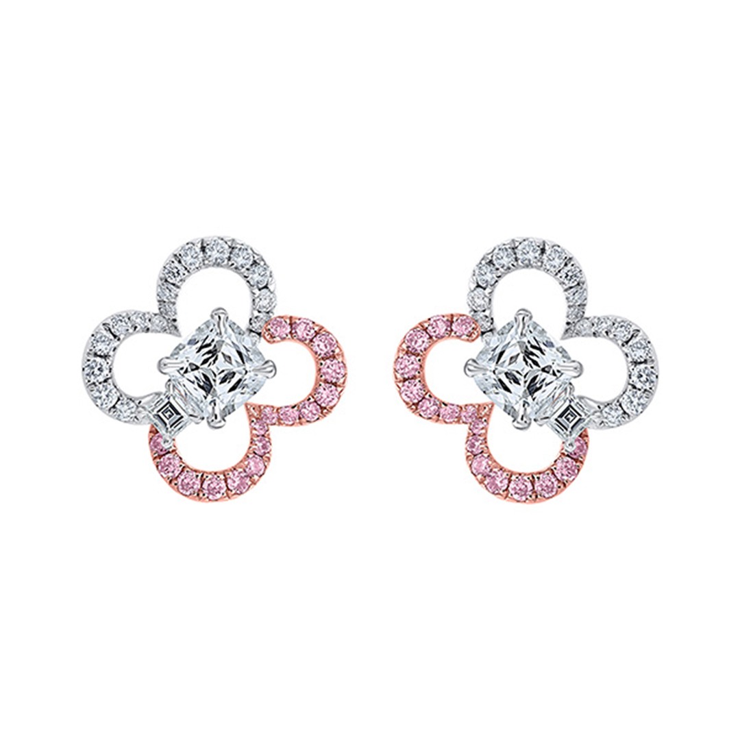 Cercei din aur alb de 18K încrustați cu Diamante naturale certificate la prestigiosul Institut de Gemologie IGI de 0.62ct. Cerceii sunt completați de cele două Diamante laterale de 0.08ct, 34 de Diamante de 0.18ct și 36 de Diamante Fancy de 0.17ct.