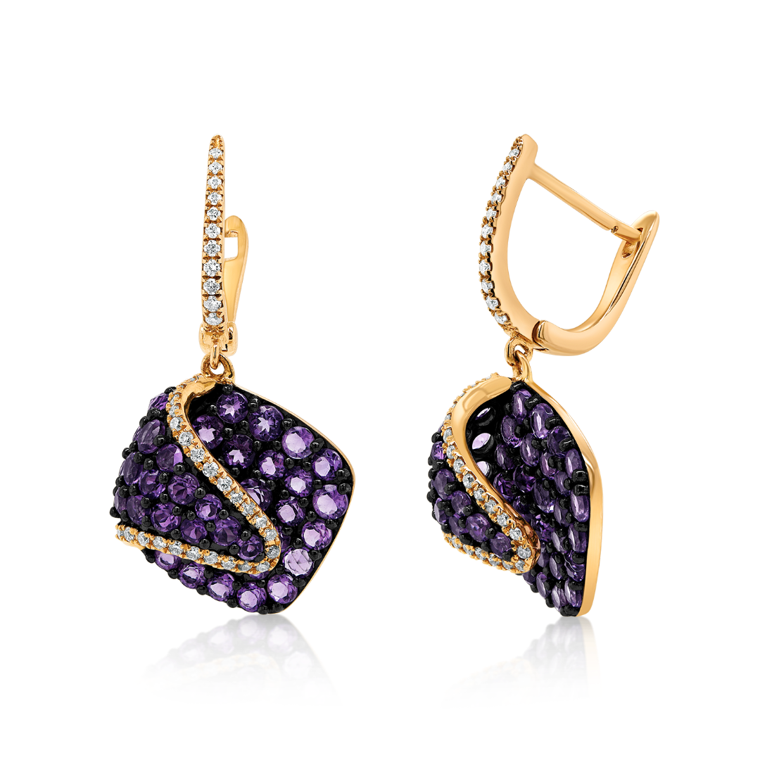 Cercei din aur roz de 18K, încrustați cu 74 Diamante de 0.22ct. și pietre Ametist.