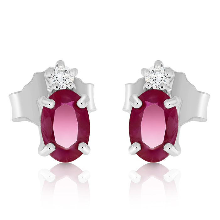 Cercei din aur alb de 18K, cu două Diamante Round Brilliant de 0.08ct și două Rubine de 0.98ct.