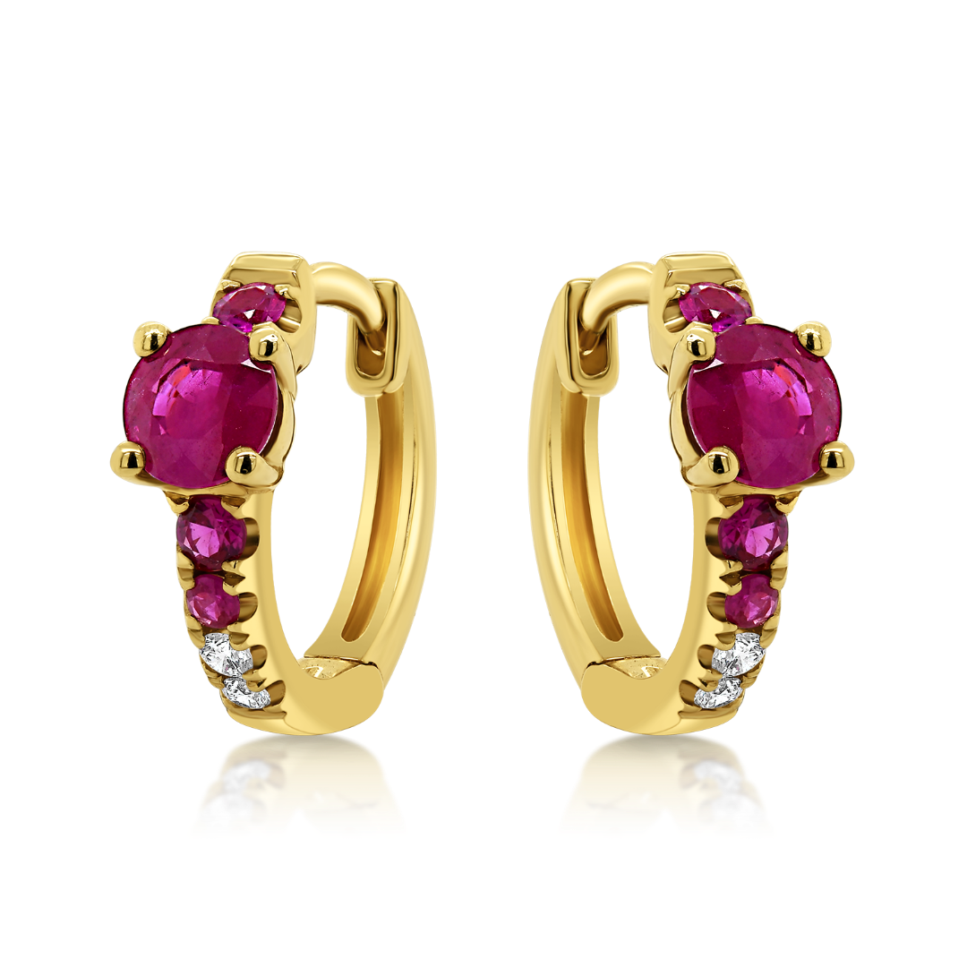 Cercei pentru copii din aur galben de 18K, cu Rubine și Diamante.