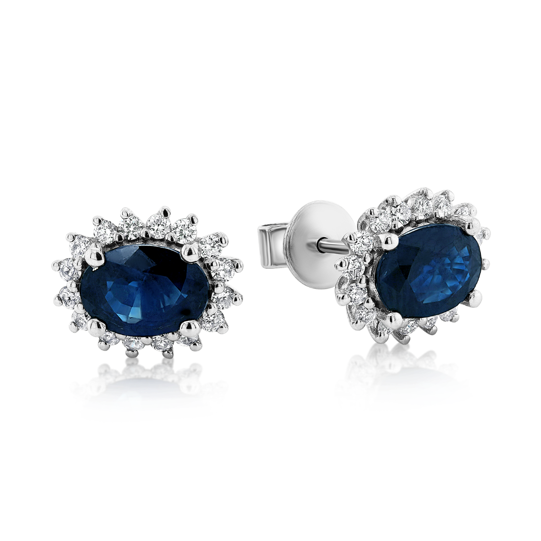 Cercei din aur alb de 14K, cu 32 Diamante de 0.31ct. și Safire albastre.
