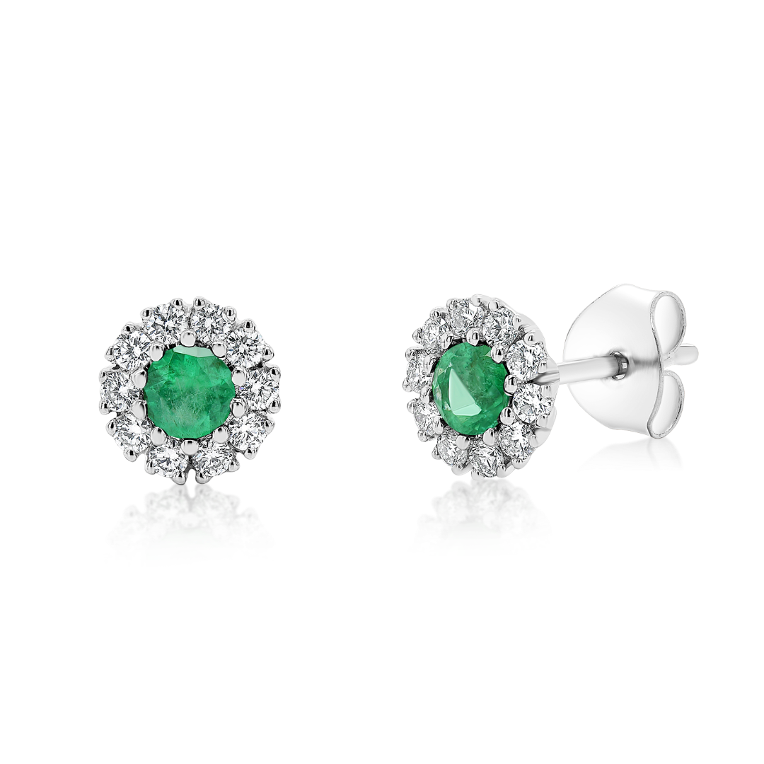 Cercei din aur alb de 18K, cu Diamante și Smaralde