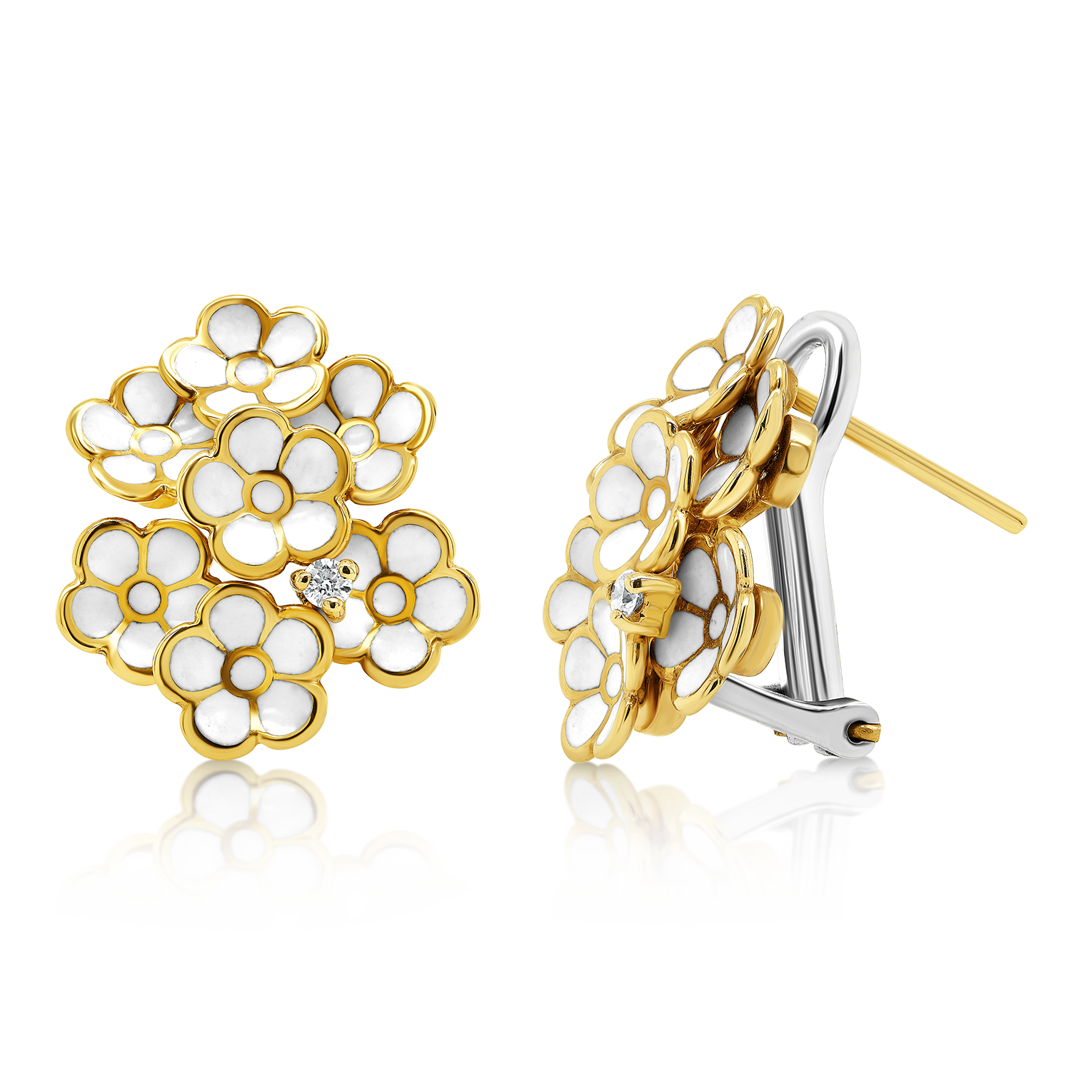 Cercei din aur galben de 14K cu Diamante și Email alb