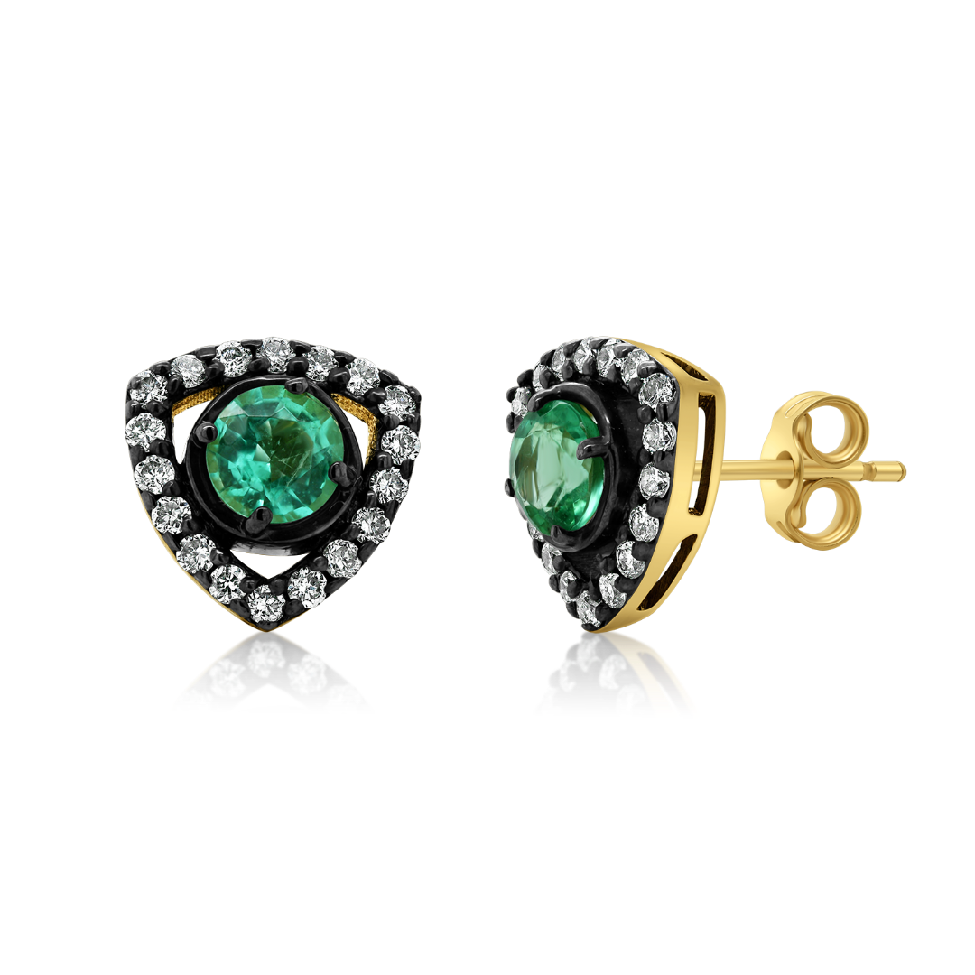 Cercei din aur galben de 18K cu rodiu negru, 36 de Diamante naturale de 0.29ct. și Smaralde de 0.60ct.
