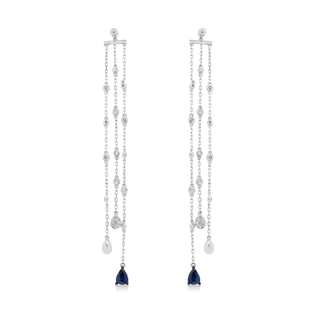 Cercei din aur alb de 14K, cu 46 Diamante naturale de 0.24ct. și 2 Safire albastre de 0.73ct.