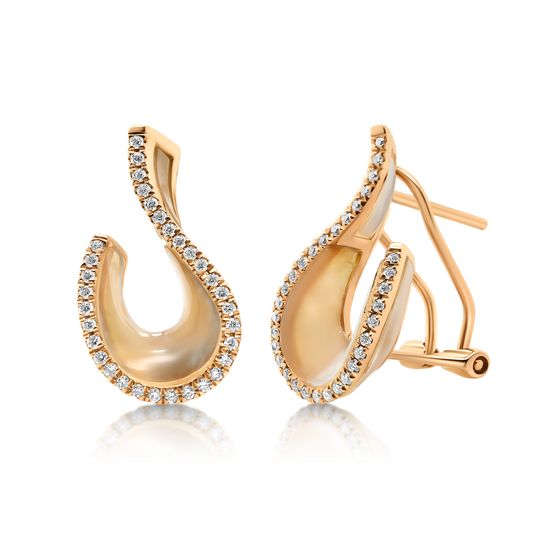Cercei din aur roz de 18K cu Sidef și Diamante naturale