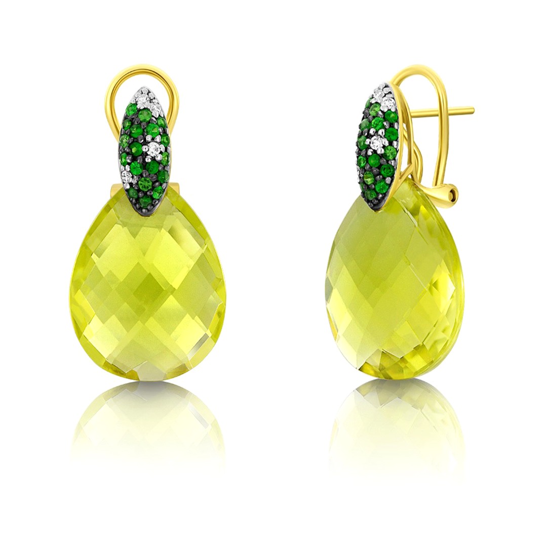 Cercei din aur galben de 18K cu Granat verde, Quartz galben și Diamante naturale