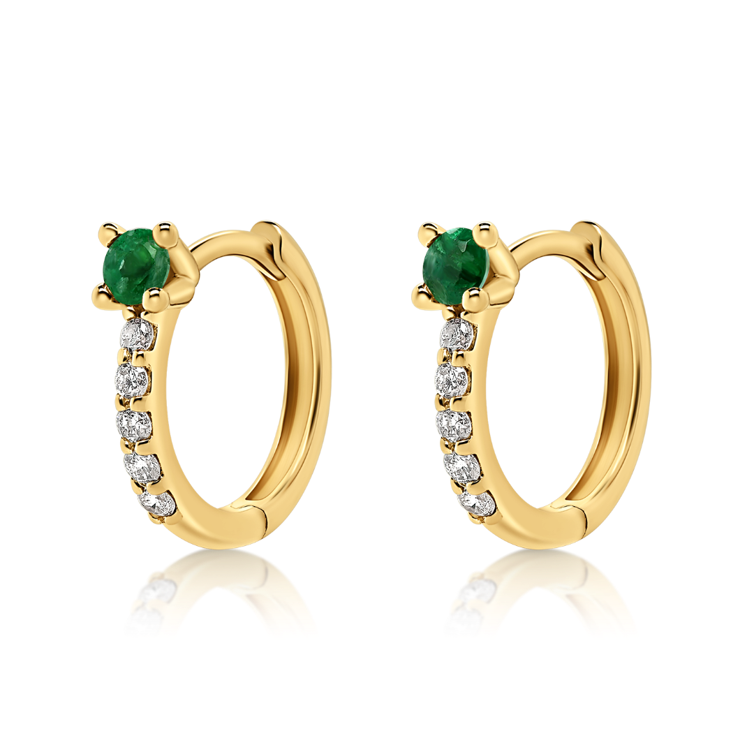 Cercei pentru copii din aur galben de 14K cu Smaralde și Diamante naturale