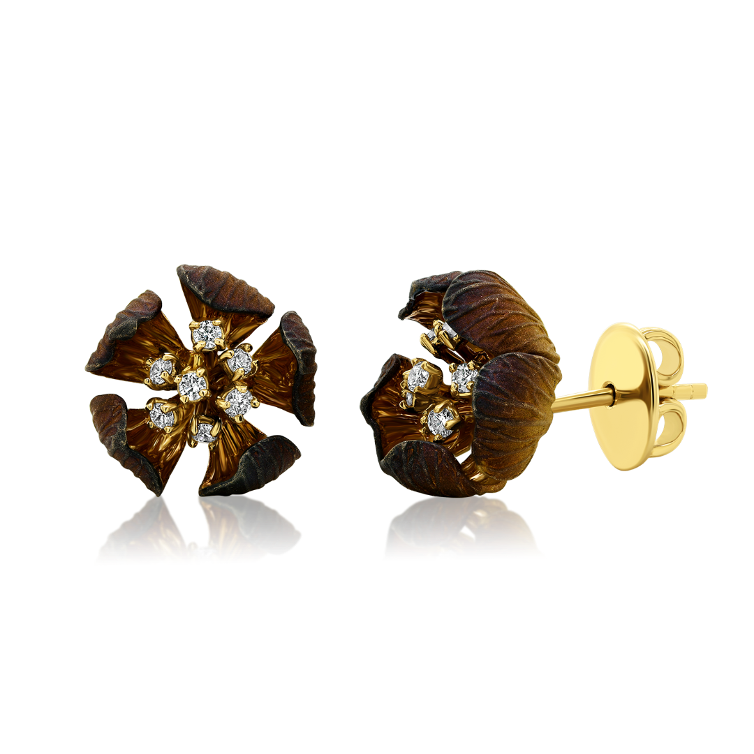 Cercei din aur galben de 18K, cu Diamante de 0.21ct.
