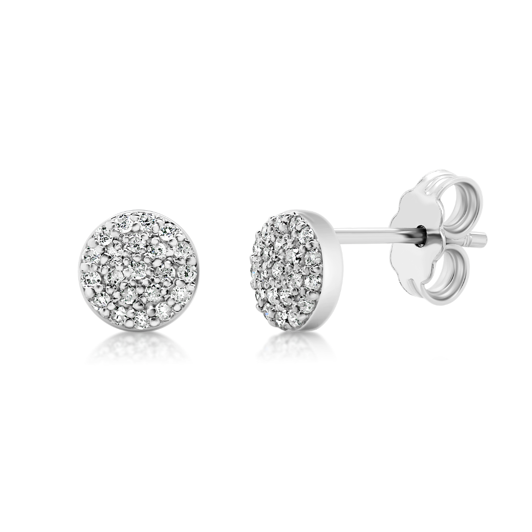 Cercei din aur alb de 18K încrustați cu Diamante naturale Round Brilliant de 0.23ct.
