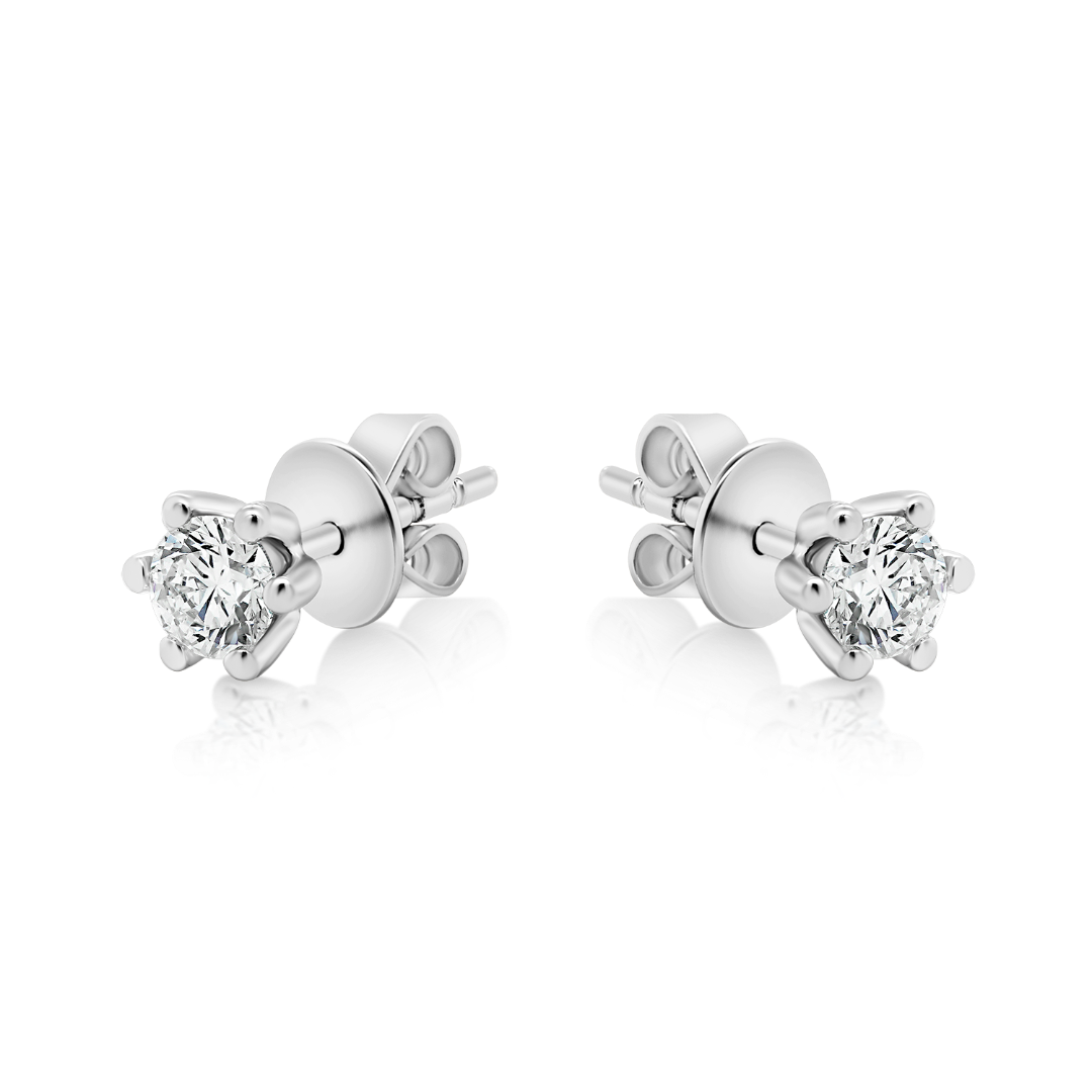 Cercei din aur alb de 14K încrustați cu Diamante naturale Round Brilliant de 0.396ct.