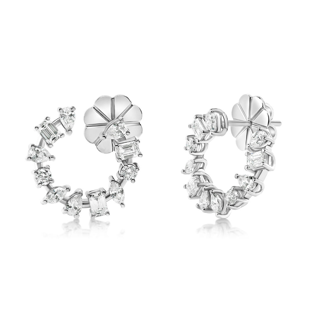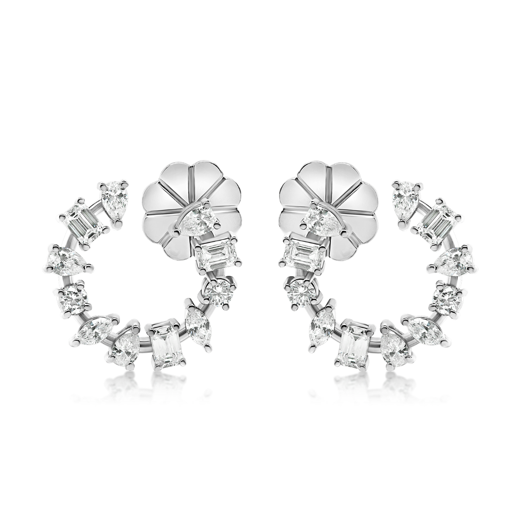 Cercei din aur alb de 18K încrustați cu 22 de Diamante Round cut , Marquise cut, Pear cut și Radiant cut, cu o greutate totală de 1.93ct.