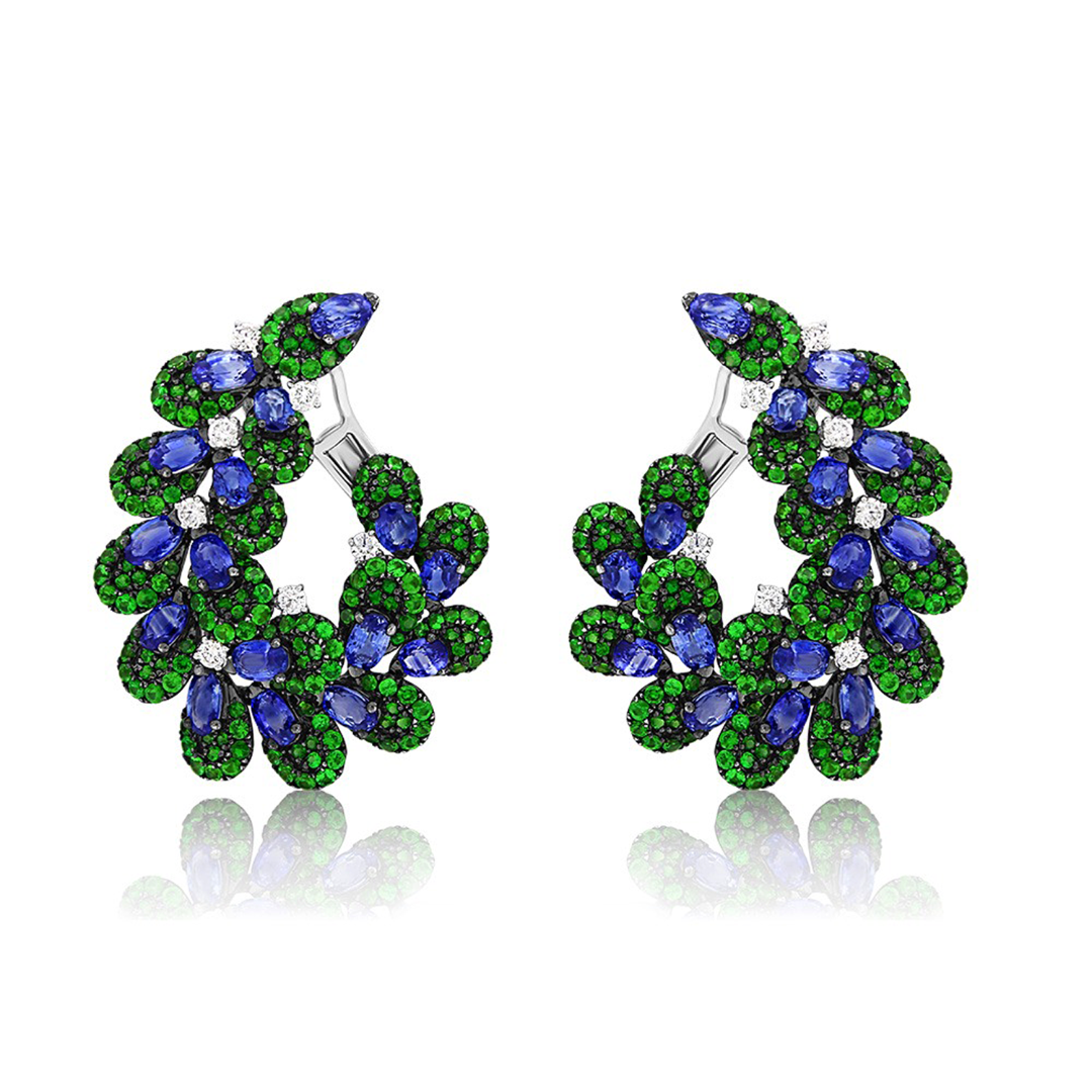 Cercei din aur alb de 18K cu Safire, Granat și Diamante naturale