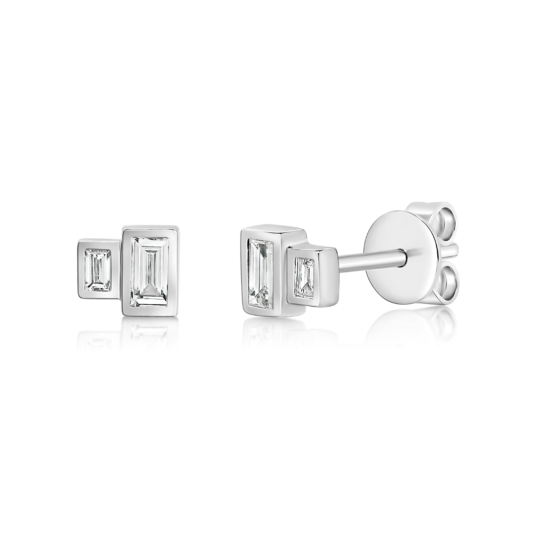 Cercei din aur alb de 18K încrustați cu 4 Diamante naturale Baguette cut de 0.18ct.