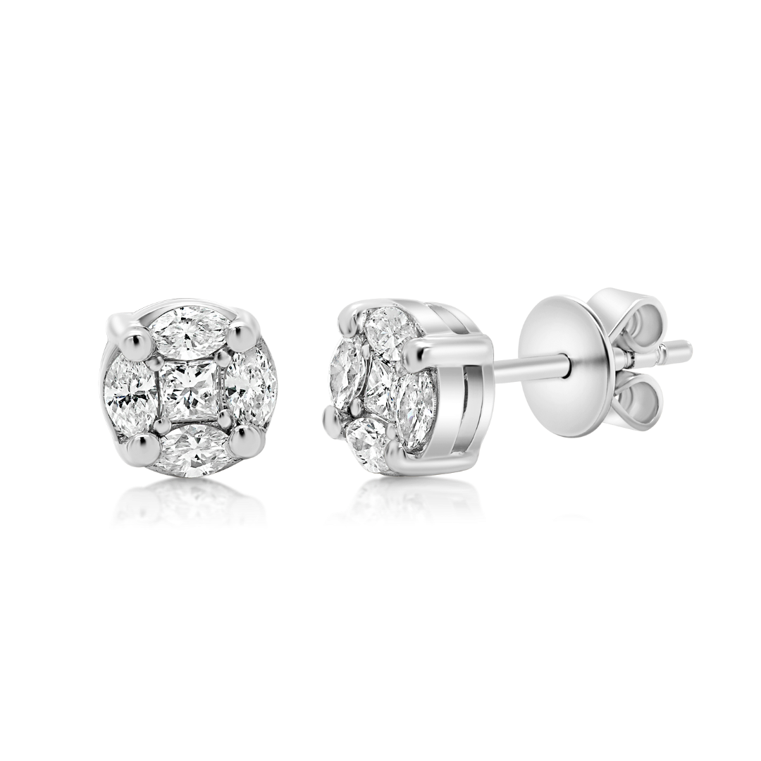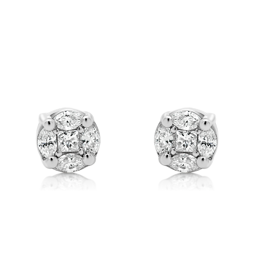 Cercei din aur alb de 14K încrustați cu 8 Diamante naturale Marquise și  două Diamante naturale Princess cut de 0.521ct.