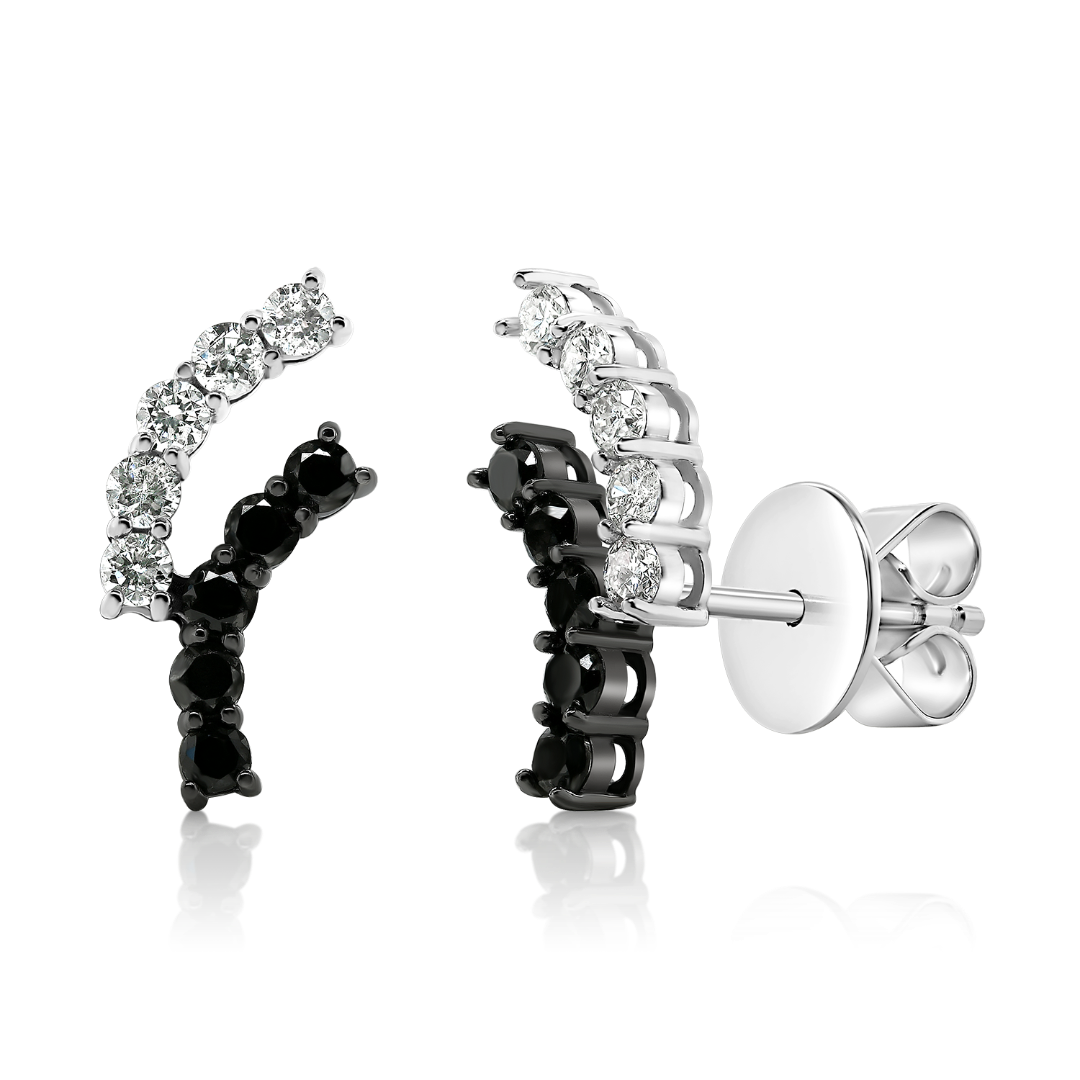 Cercei din aur alb de 18K, încrustați cu 10 diamante albe și 10 diamante negre.