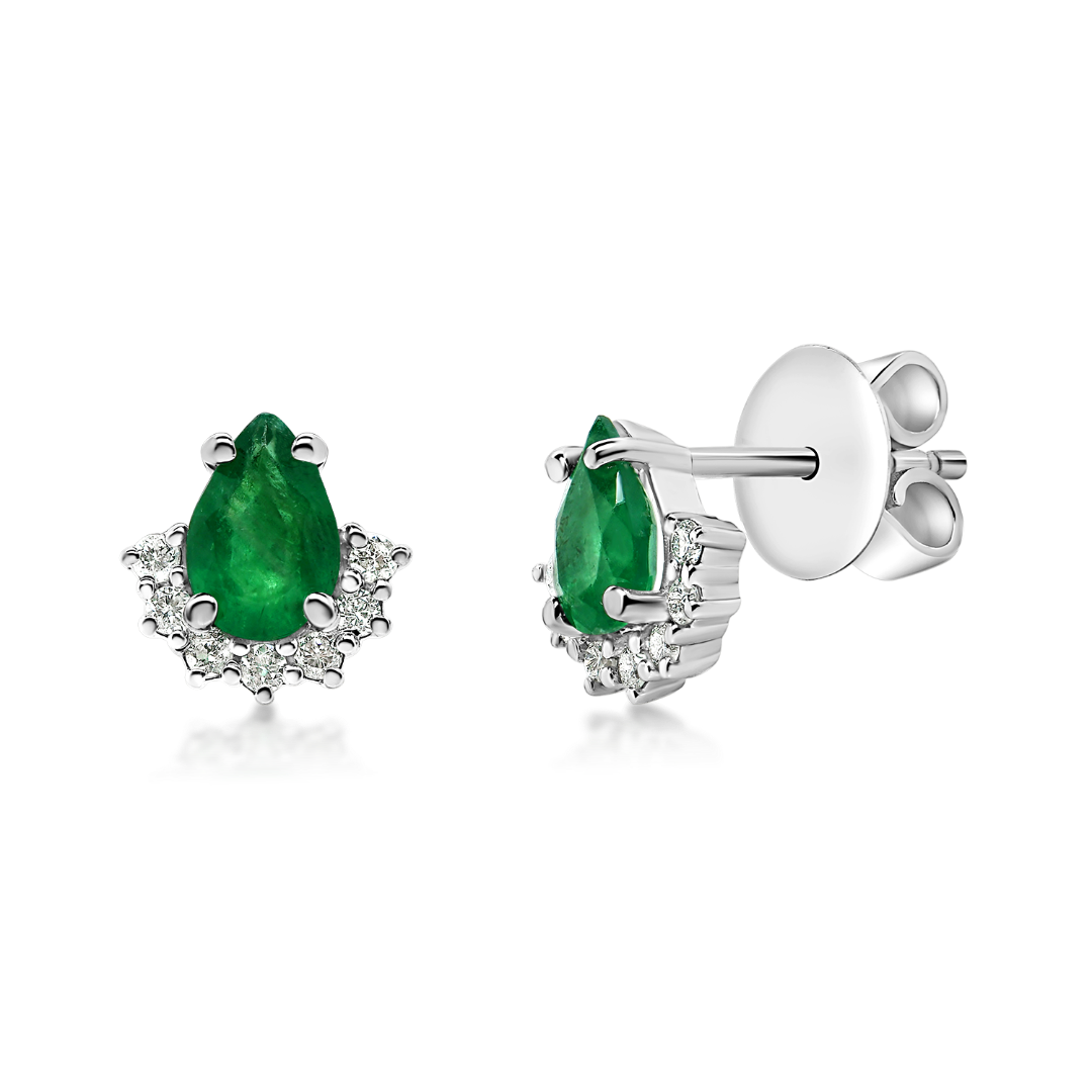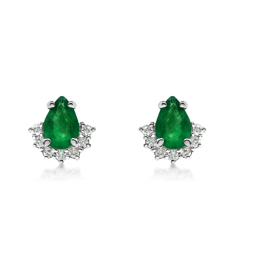 Cercei din aur alb de 18K, încrustați cu 14 Diamante naturale de 0.12ct. și 2 Smaralde de 0.78ct.