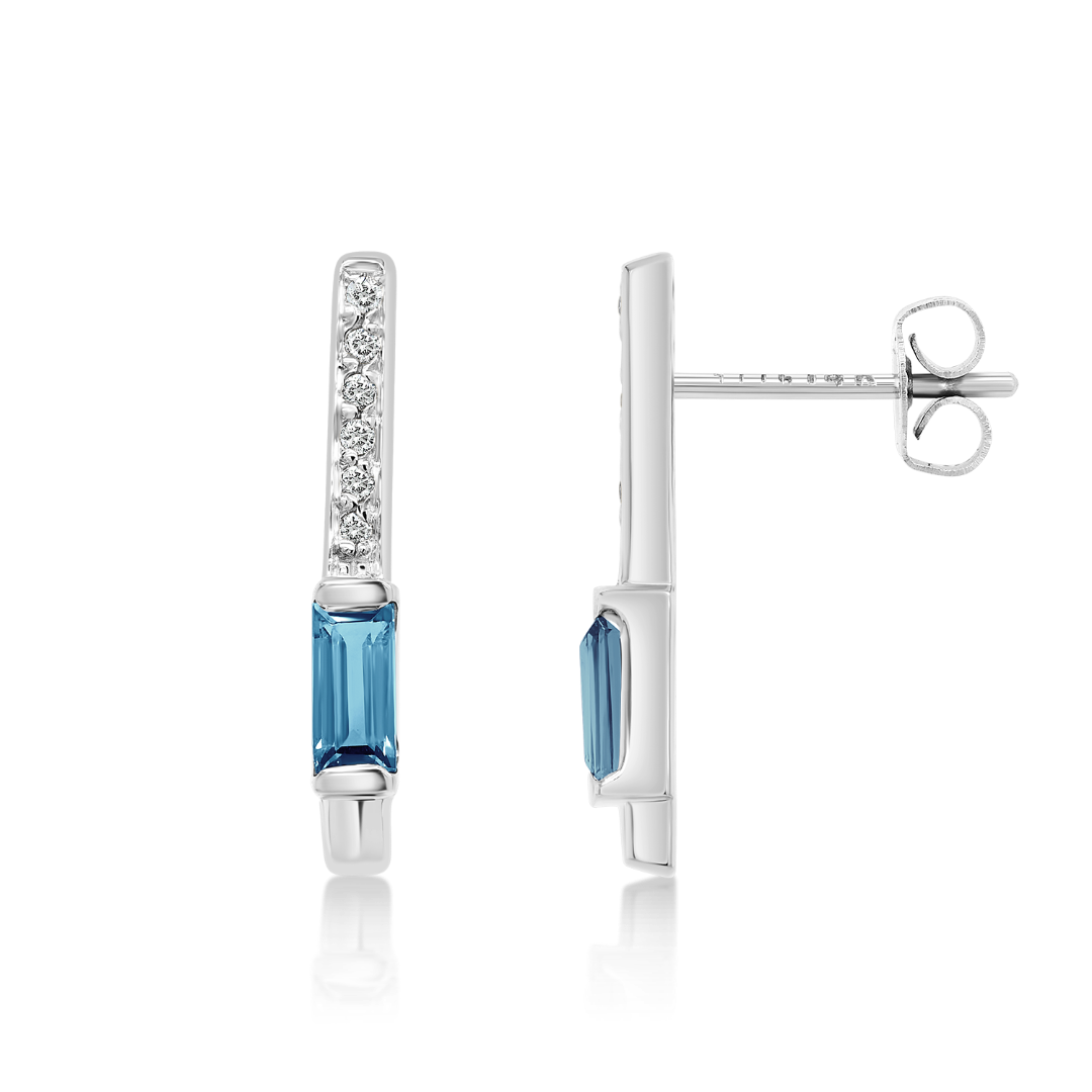 Cercei din aur alb de 14K cu Diamante Round Brilliant de 0.026ct și London Blue Topaz.