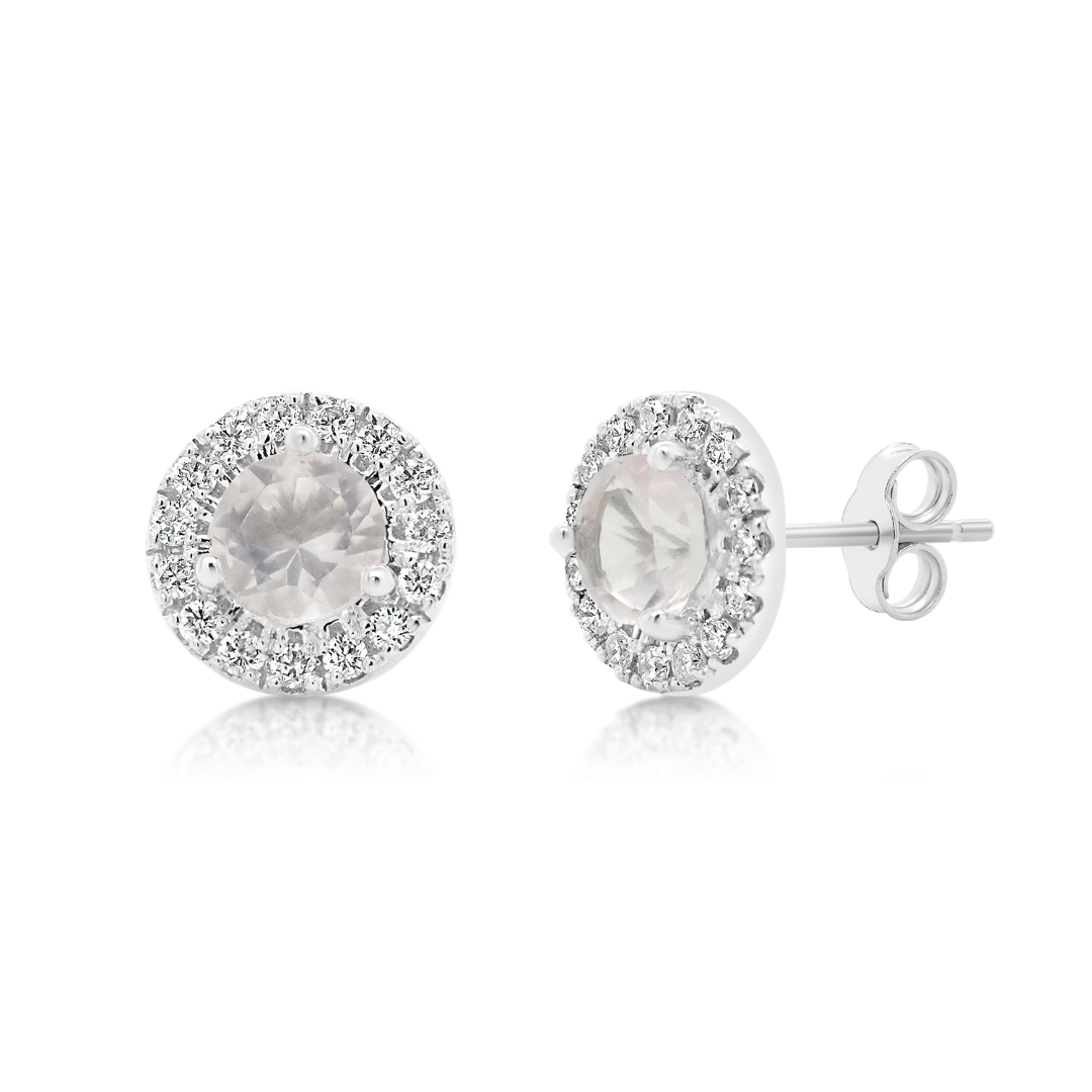 Cercei din aur alb de 18K cu Quartz rose și Diamante naturale