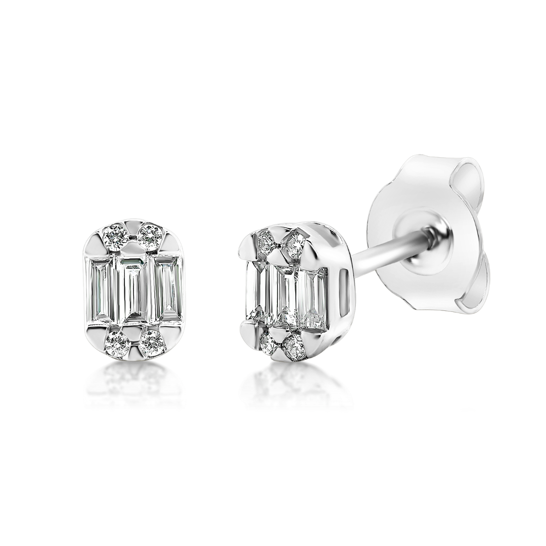Cercei din aur alb de 18K cu 8 Diamante Round Brilliant de 0.03ct. și 6 Diamante Baguette de 0.12ct.