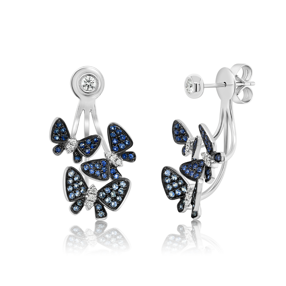 Cercei din aur alb de 18K cu Safire albastre și Diamante naturale
