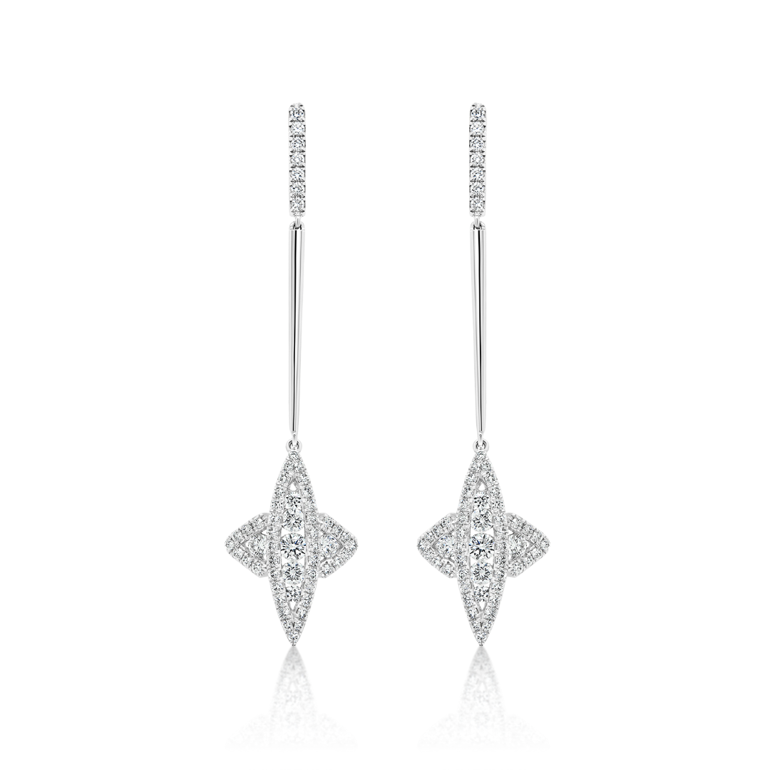 Cercei din aur alb de 18K încrustați cu 112 Diamante naturale Round Brilliant de 1.35ct.