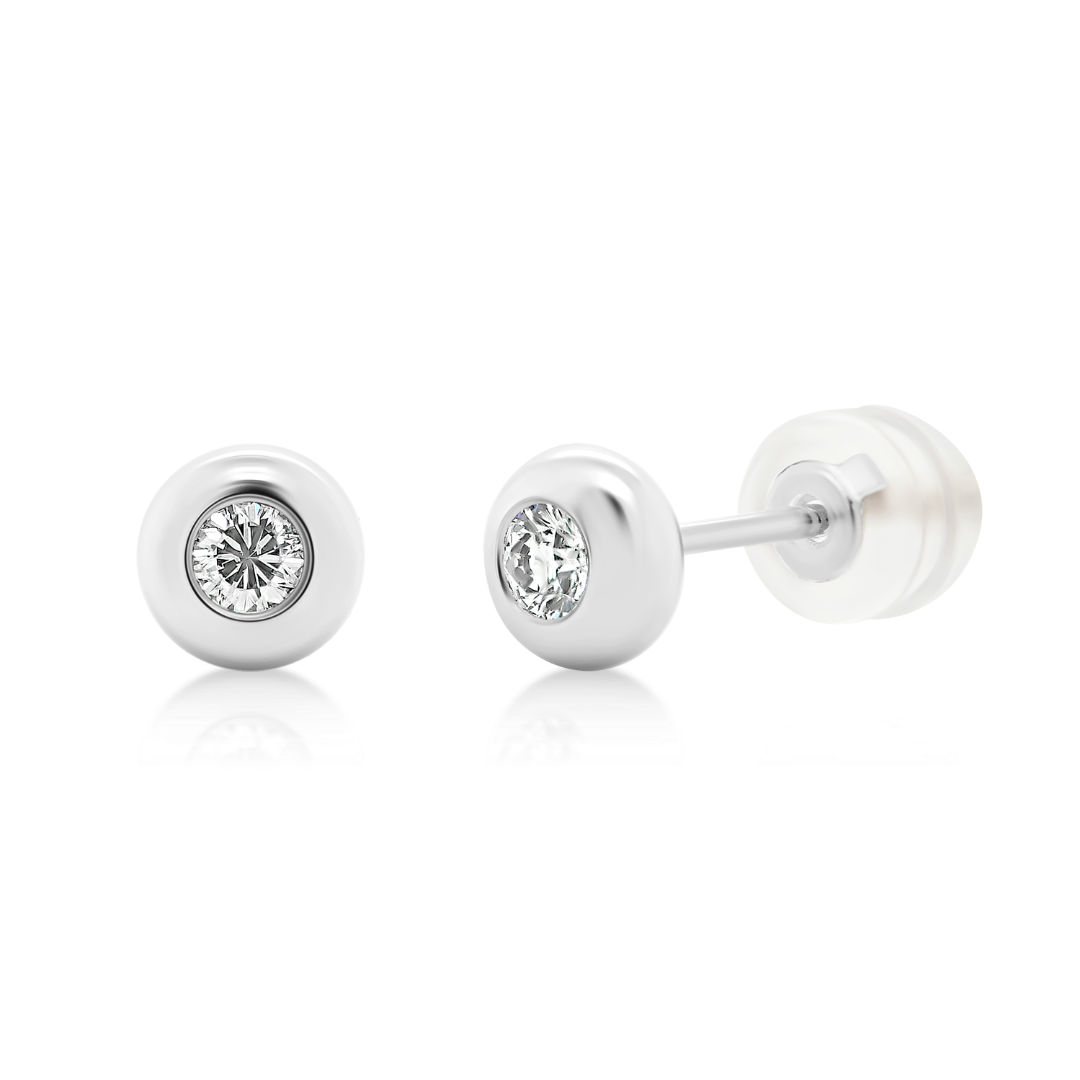 Cercei din aur alb de 18K cu două Diamante naturale Round Brilliant de 0.117ct.