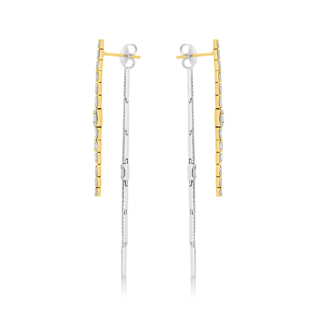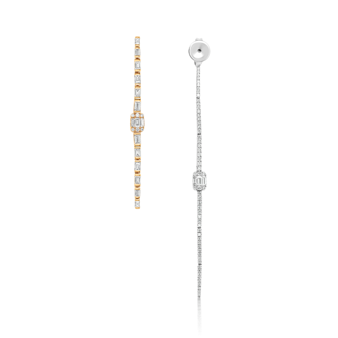 Cercei din aur alb de 18K cu Diamante Baguette și Round Brilliant, cu o greutate totală de 1.44ct.