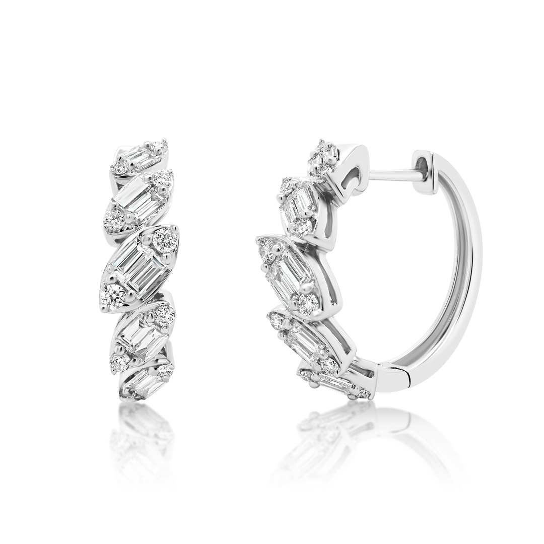 Cercei din aur alb de 18K cu 20 de Diamante Round Brilliant de 0.157ct și 20 de Diamante Baguette de 0.36ct.